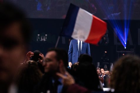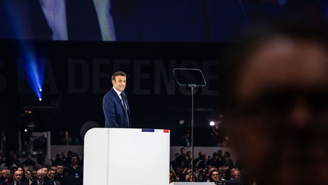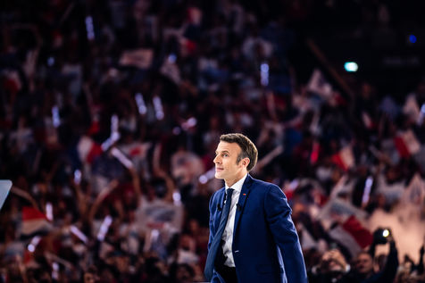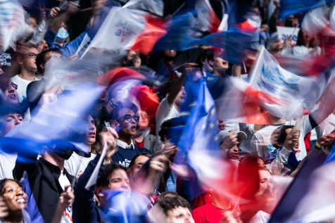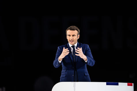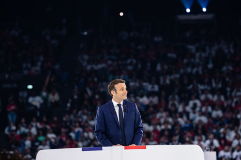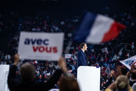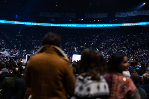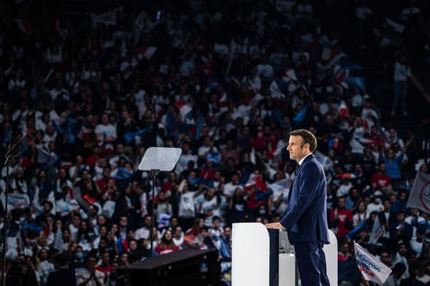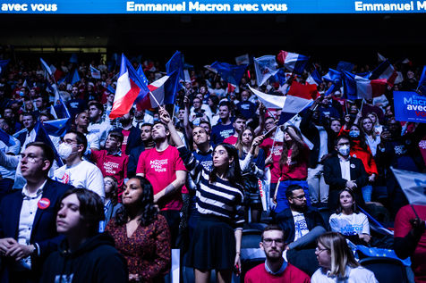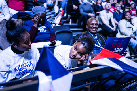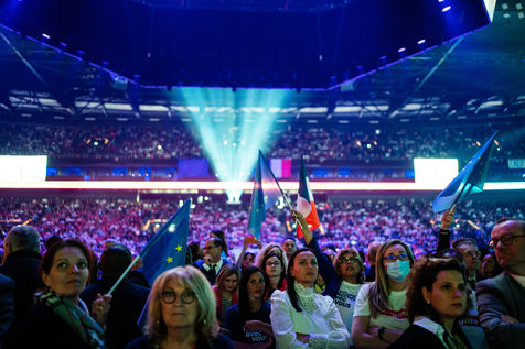Meeting politique d'Emmanuel Macron, président de la république française, candidat à la présidence pour un second mandat, à Paris La Défense Arena.