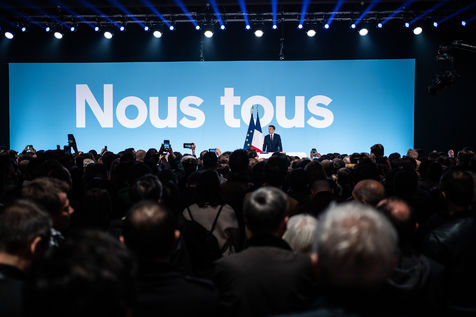 Electoral evening of the presidential majority of Emmanuel Macron, president of the French republic, candidate to the presidential election 2022, on the occasion of the first round of the election at Paris Expo Porte de Versailles.