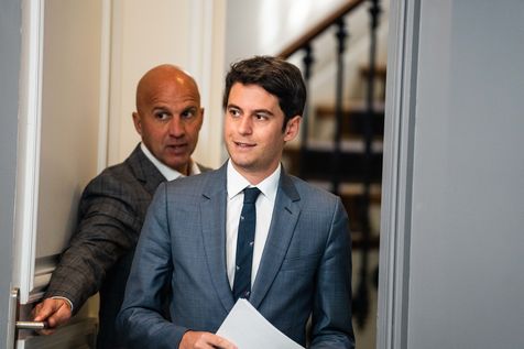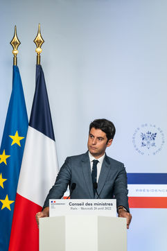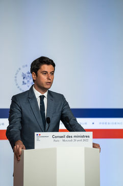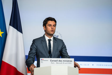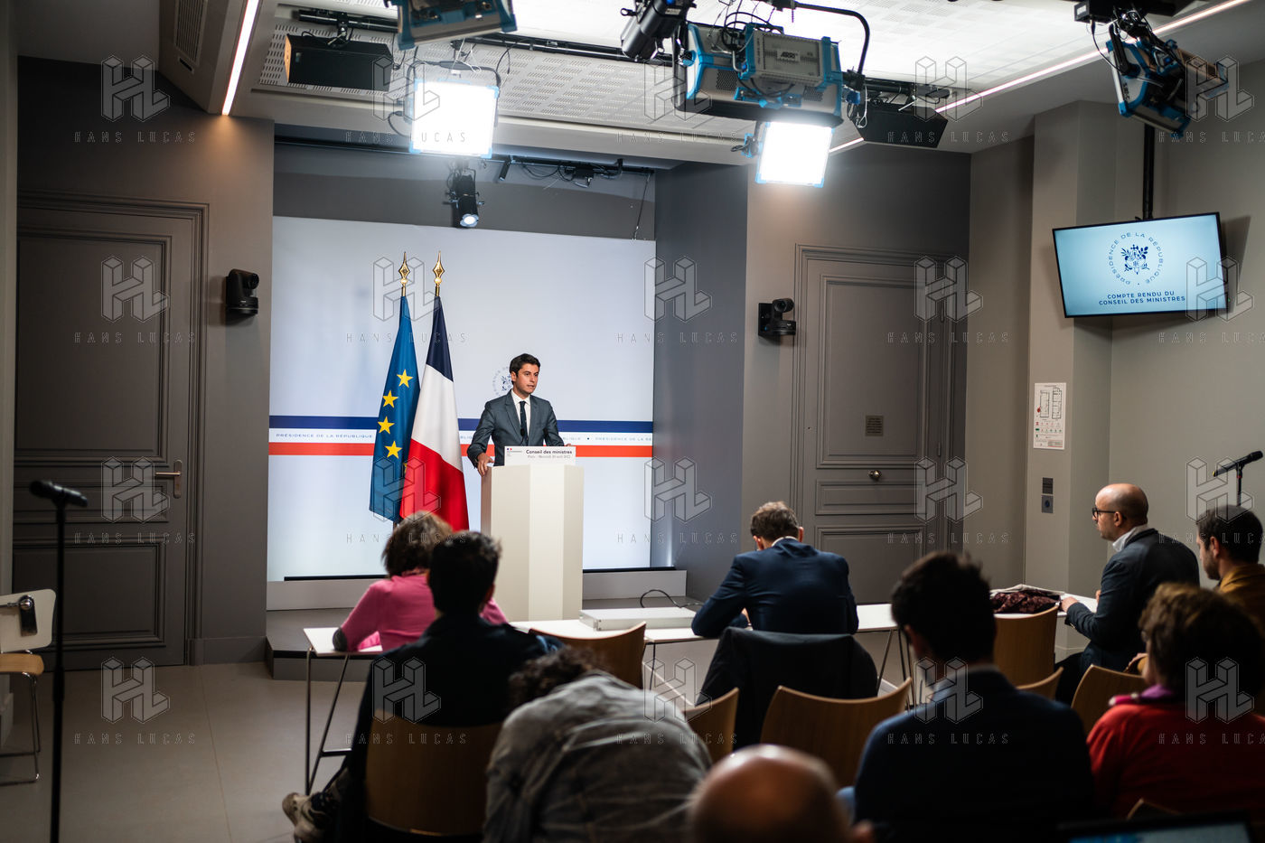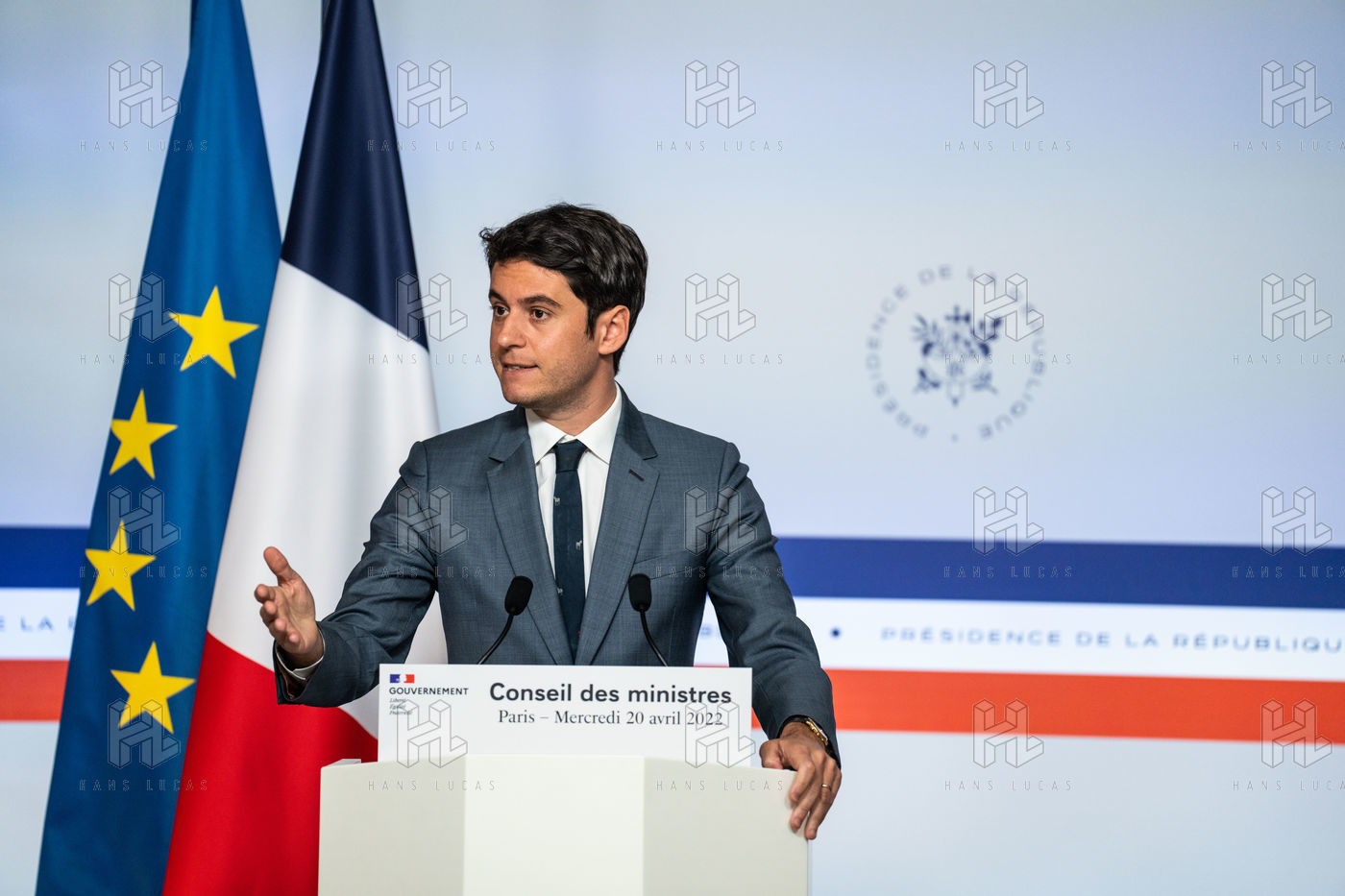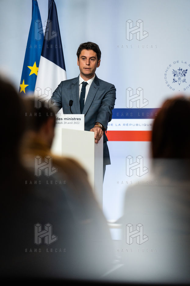 Gabriel Attal, government spokesman, reports after the council of ministers, in the spokesman's room, Paris 20 April 2022.