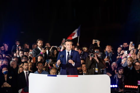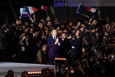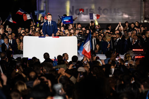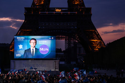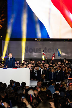 Soirée électorale de la majorité présidentielle d'Emmanuel Macron, président de la République française, président du parti La République en marche, candidat à l'élection présidentielle 2022, à l'occasion du second tour de l'élection au Champ de Mars de Paris.