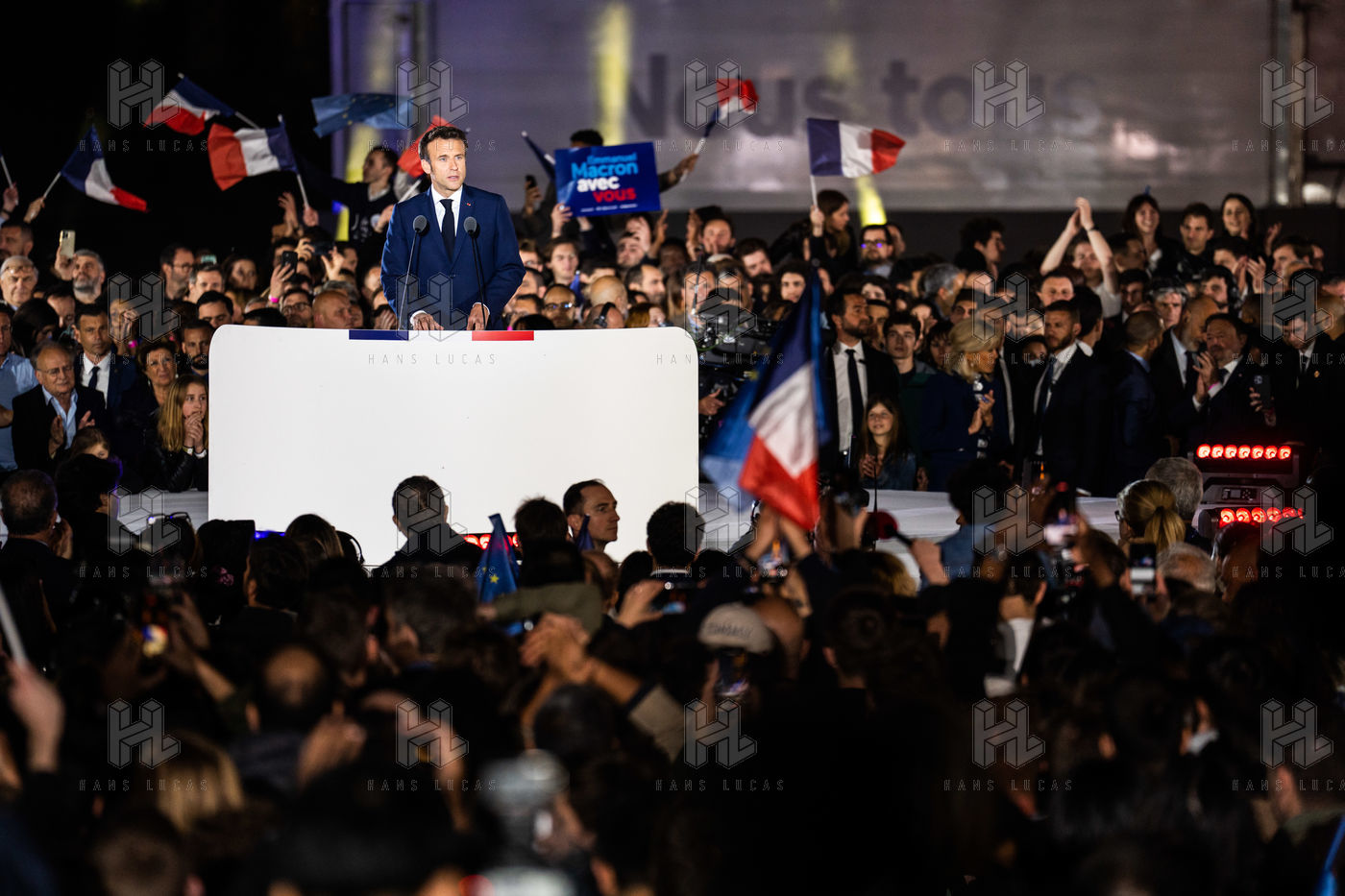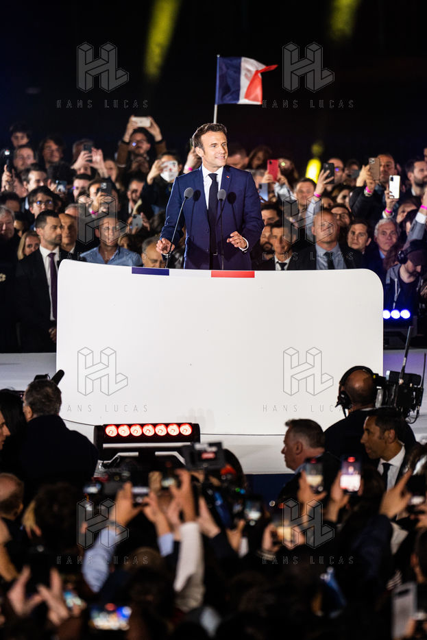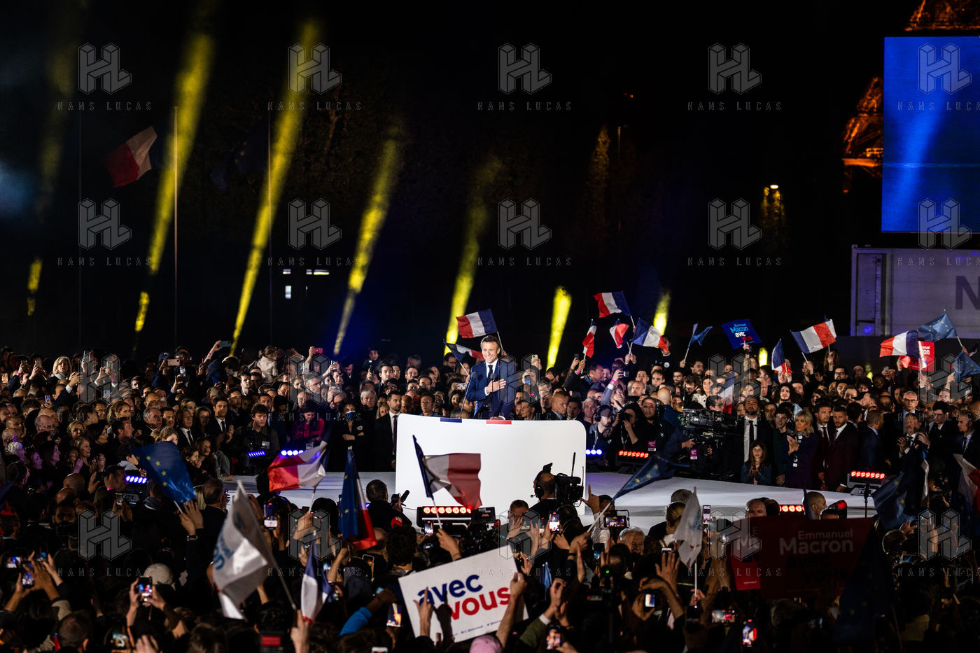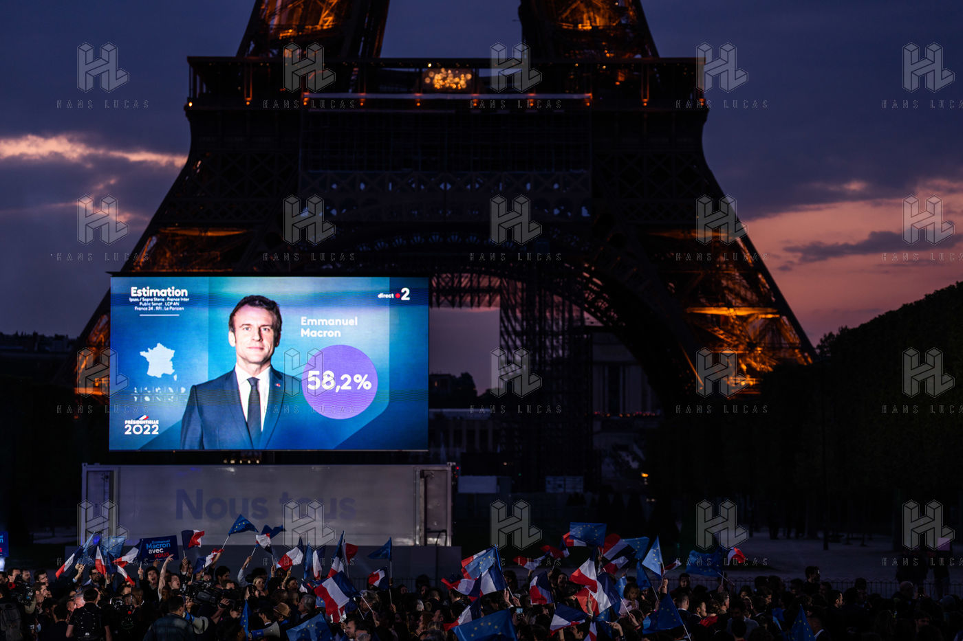 Election night of the presidential majority of Emmanuel Macron, president of the French Republic, president of the party La République en marche, candidate for the presidential election 2022, on the occasion of the second round of the election at the Champ de Mars in Paris.