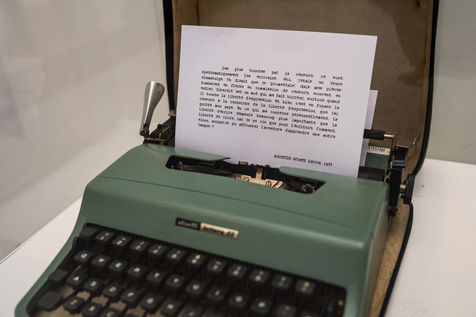 Opening of the exhibition of Agustín Gómez Arcos, Spanish writer at the Cervantes Institute in Paris, in the presence of the curator of the exhibition, the journalist María D. Valderrama. The exhibition "Between memory and oblivion", seeks through documents and photographs, to recover the figure and work of the writer from Almeria, creator of a literary work in French underestimated partly because of the harshness of its themes, which hide ideals of freedom.