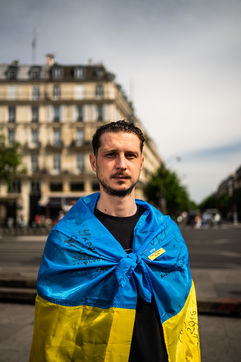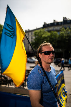 Manifestation contre l'invasion militaire russe en Ukraine et en soutien au peuple ukrainien, sur la place de la République.