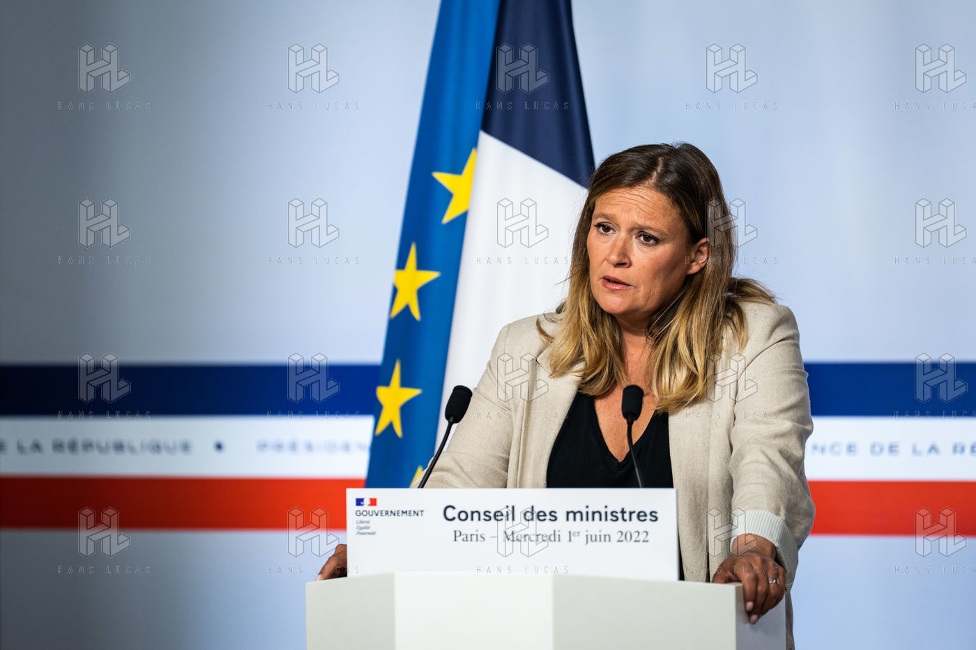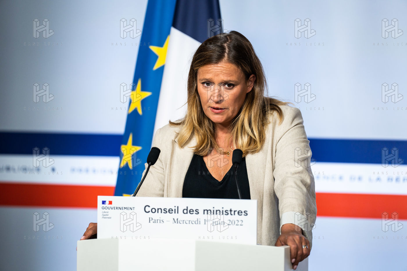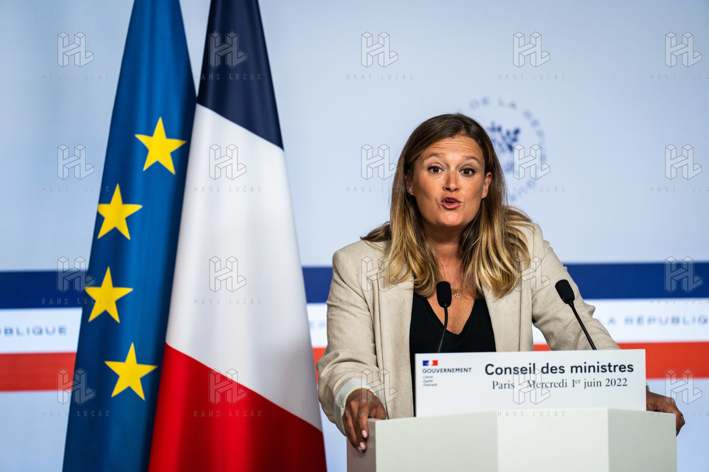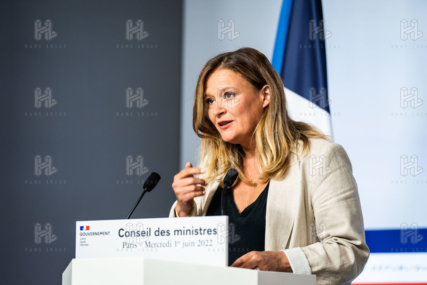 Report at the end of the Council of Ministers, in the Spokesman's Room, Paris, June 1, 2022.