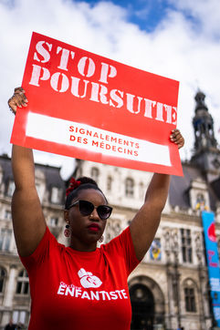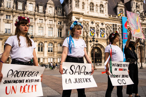 Rassemblement contre les violences faites aux enfants à l'appel du collectif enfantiste, pour arrêter la maltraitance et protéger l'enfant, à l'hôtel de ville de Paris.
