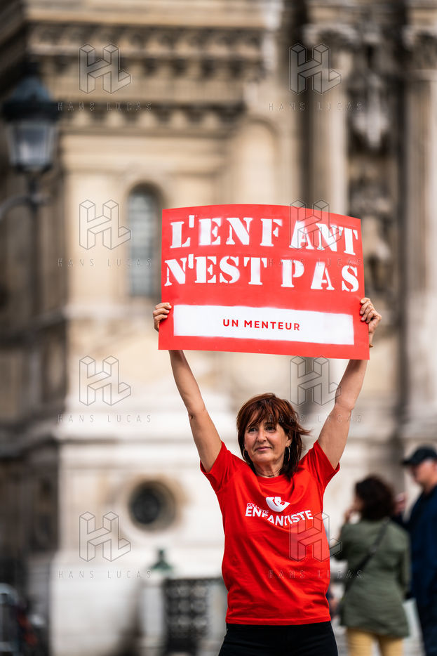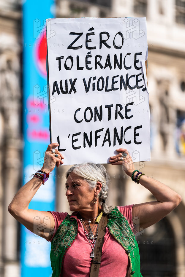 Rally against violence against children at the call of the collective Enfantiste, to stop the abuse and protect the child, at the city hall of Paris.