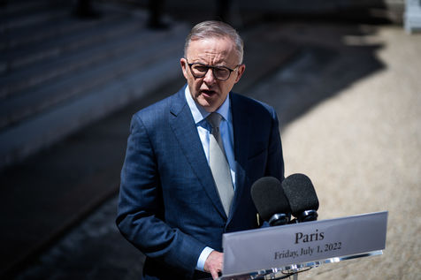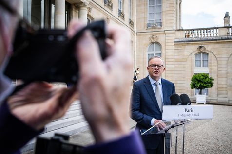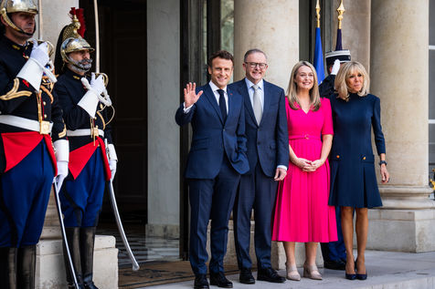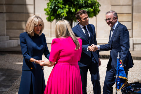 Déjeuner de travail entre Anthony Albanese, Premier ministre australien, et Emmanuel Macron, président de la République française, à l'Élysée. Entretiens bilatéraux sur les mesures nécessaires pour rétablir la confiance entre nos deux pays, dans le but de renforcer la coopération sur les questions d'intérêt commun, telles que la stabilité et la prospérité de la région Indo-Pacifique, l'urgence climatique, et l'agression russe contre l'Ukraine et ses conséquences sur la sécurité alimentaire et énergétique du reste du monde.