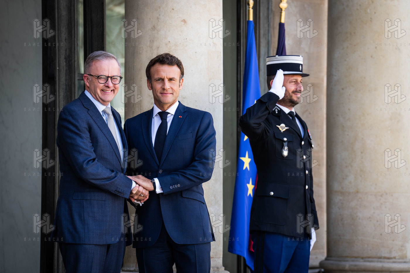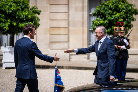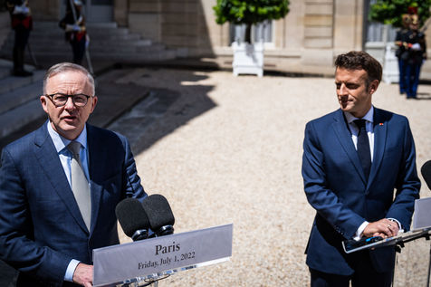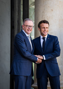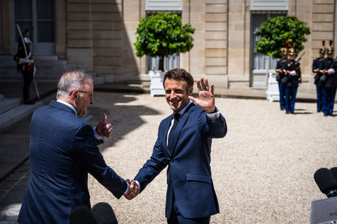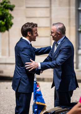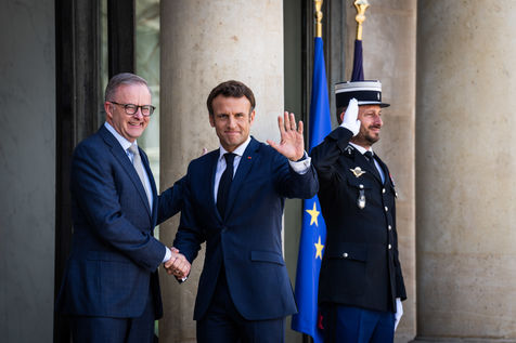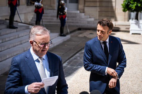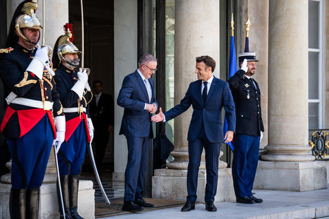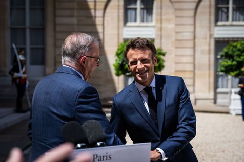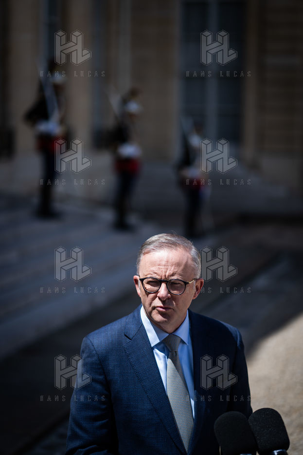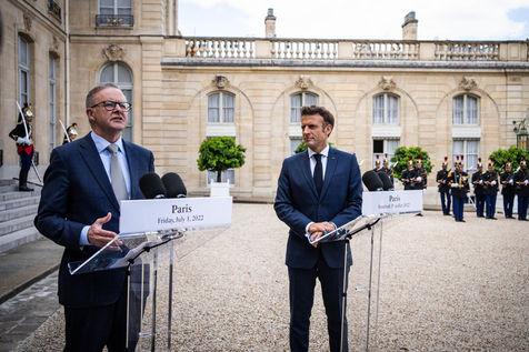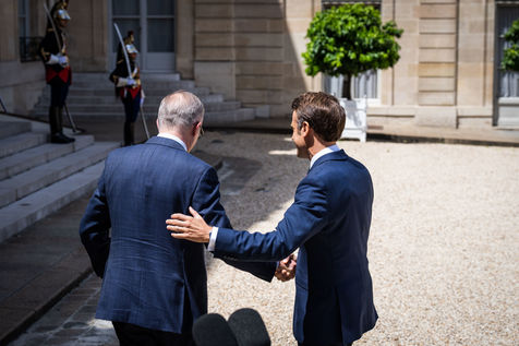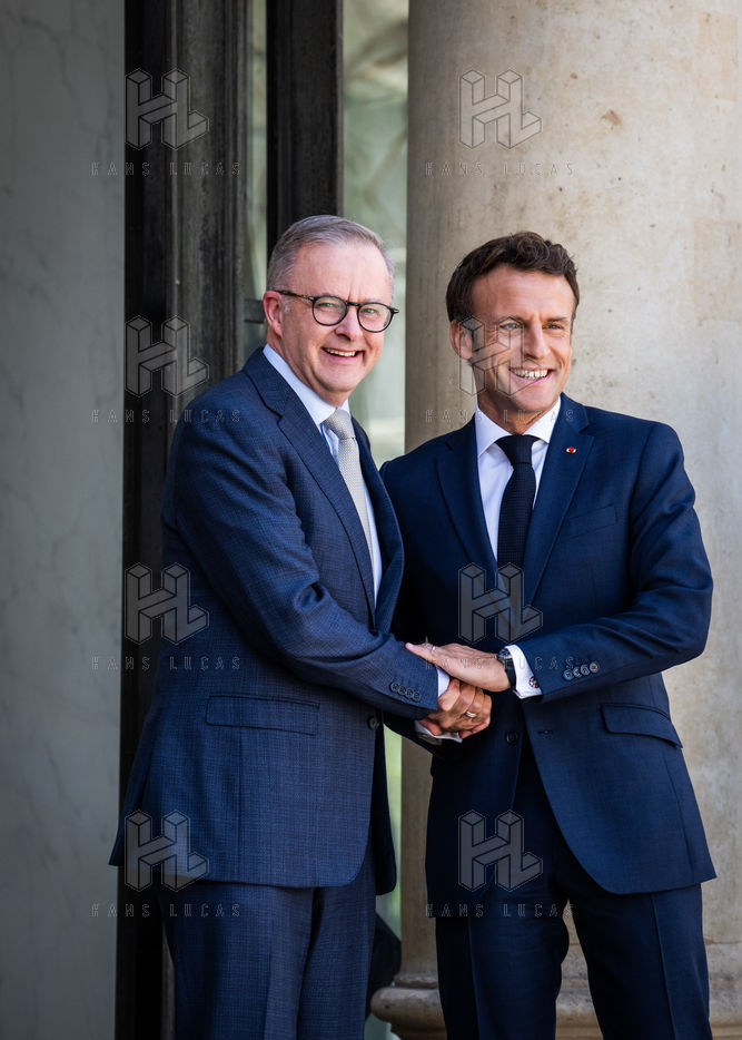 Working lunch between Anthony Albanese, Prime Minister of Australia, and Emmanuel Macron, President of the French Republic, at the Élysée Palace. Bilateral talks on the measures needed to rebuild trust between our two countries, with the aim of strengthening cooperation on issues of common interest, such as the stability and prosperity of the Indo-Pacific region, the climate emergency, and the Russian aggression against Ukraine and its consequences on the food and energy security of the rest of the world