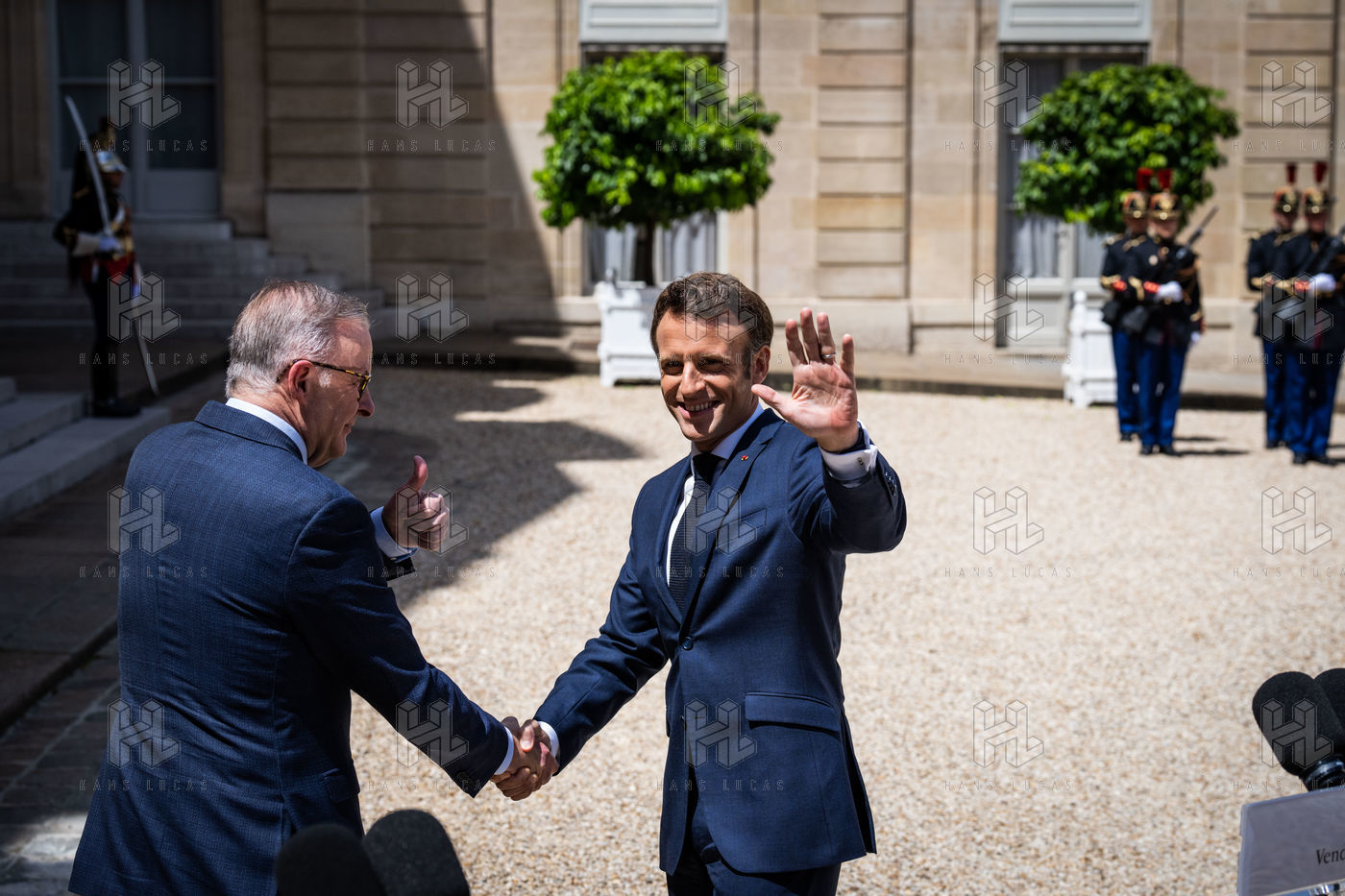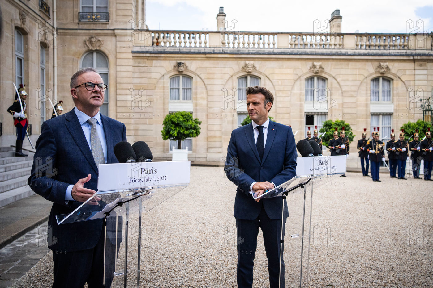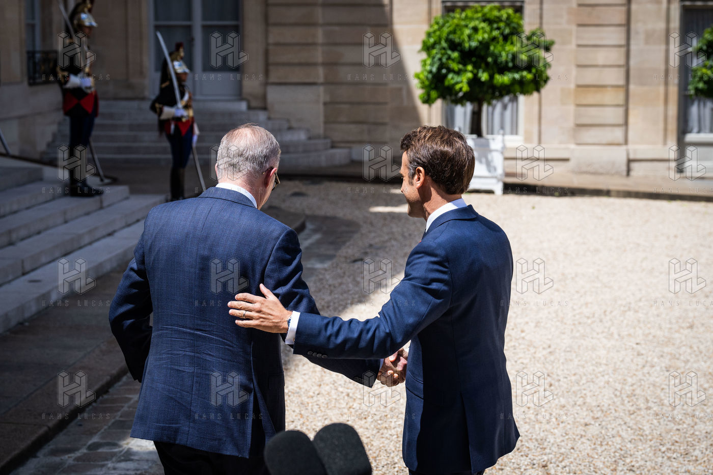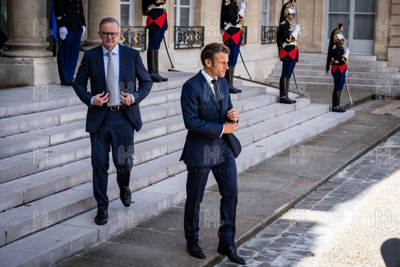Working lunch between Anthony Albanese, Prime Minister of Australia, and Emmanuel Macron, President of the French Republic, at the Élysée Palace. Bilateral talks on the measures needed to rebuild trust between our two countries, with the aim of strengthening cooperation on issues of common interest, such as the stability and prosperity of the Indo-Pacific region, the climate emergency, and the Russian aggression against Ukraine and its consequences on the food and energy security of the rest of the world