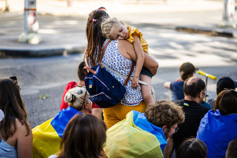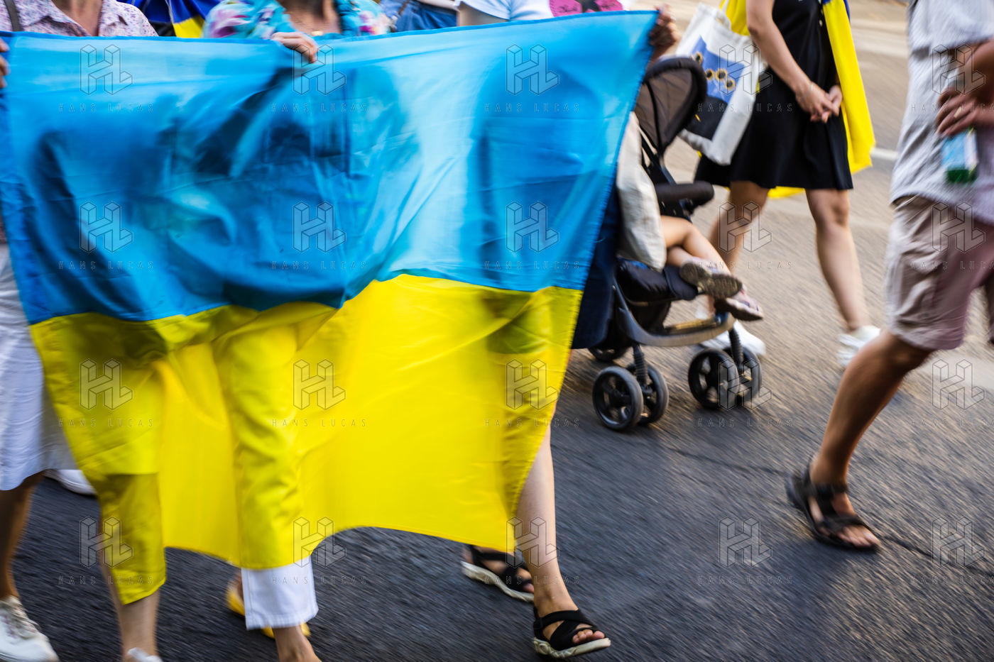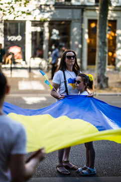 Demonstration against the Russian military invasion in Ukraine and in support of the Ukrainian people, boulevard Beaumarchais in Paris.