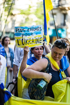 Manifestation contre l'invasion militaire russe en Ukraine à Paris