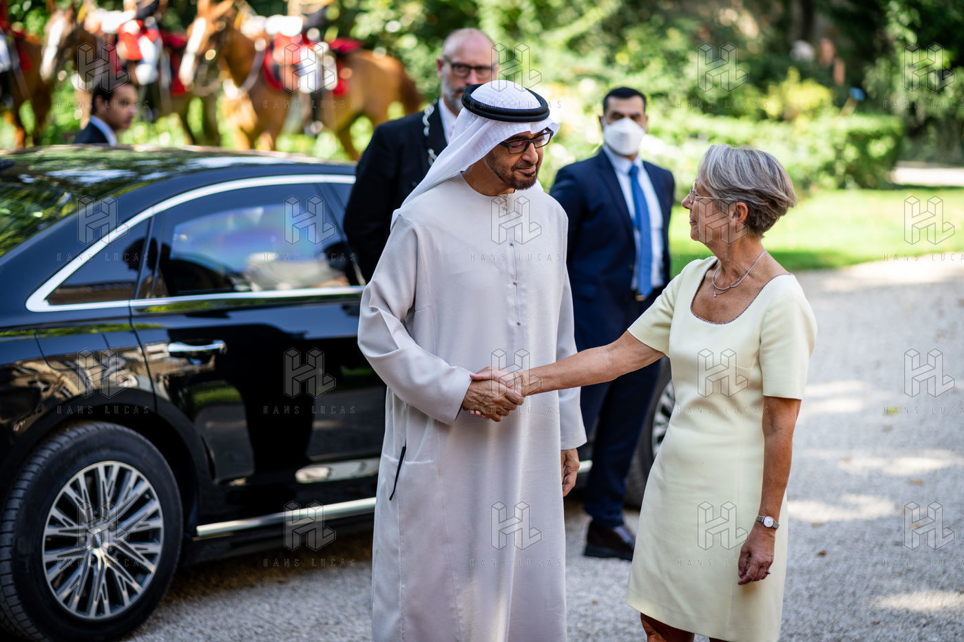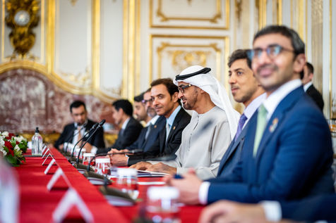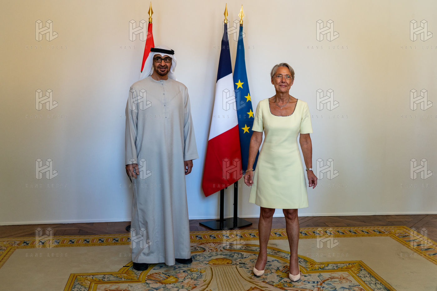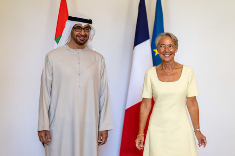 Interview of Elisabeth BORNE, Prime Minister, with Mohammed BIN ZAYED AL NAYHAN, President of the United Arab Emirates, at the Hotel de Matignon.