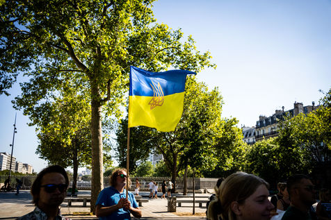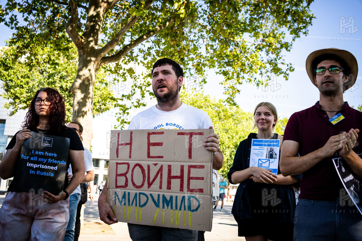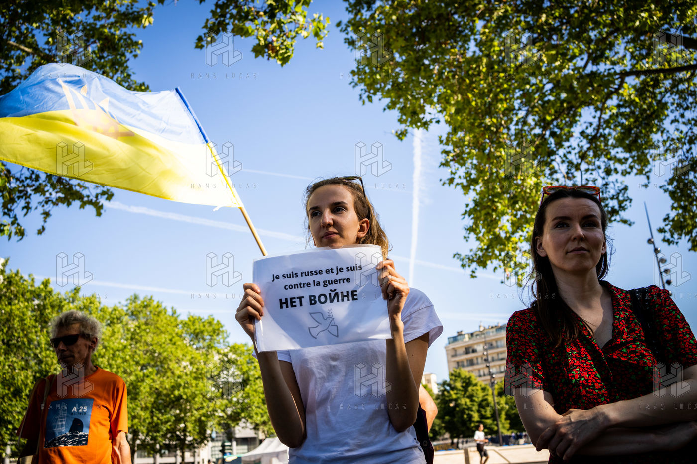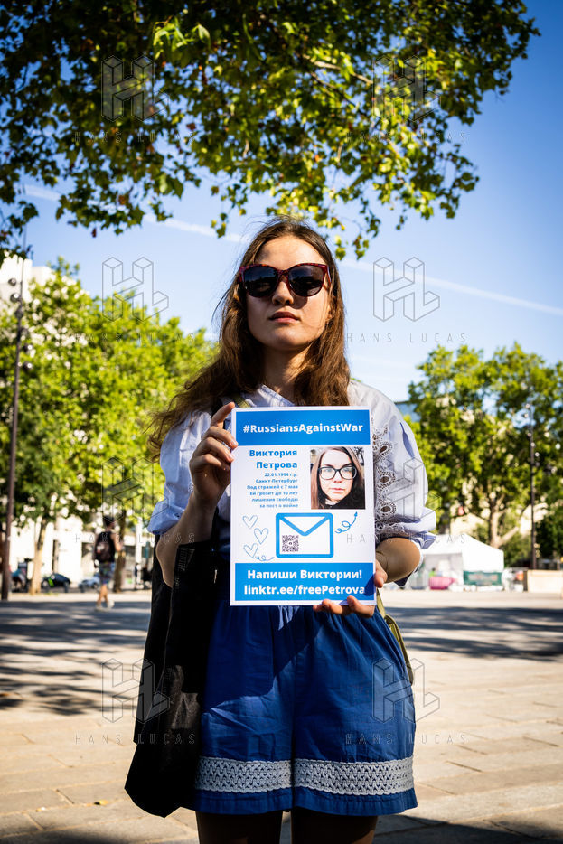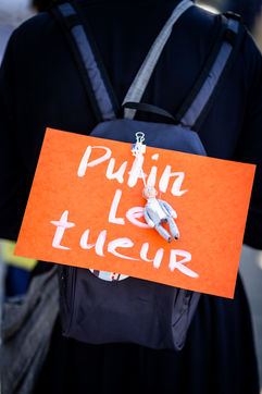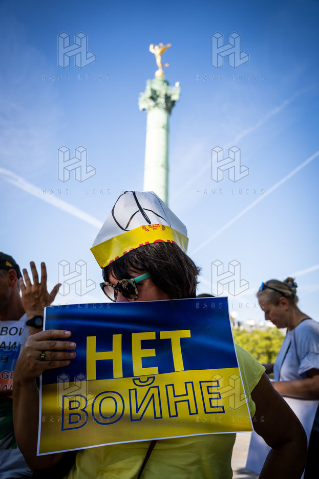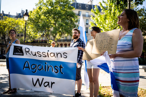Manifestation des russes contre la guerre, contre l'agression du Kremlin contre l'Ukraine, en soutien aux Russes réprimés en Russie, sur la place de la Bastille.
