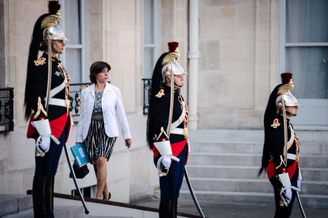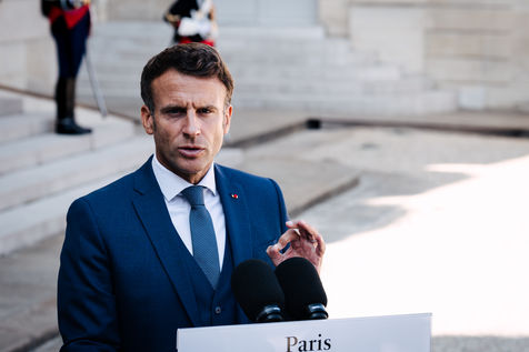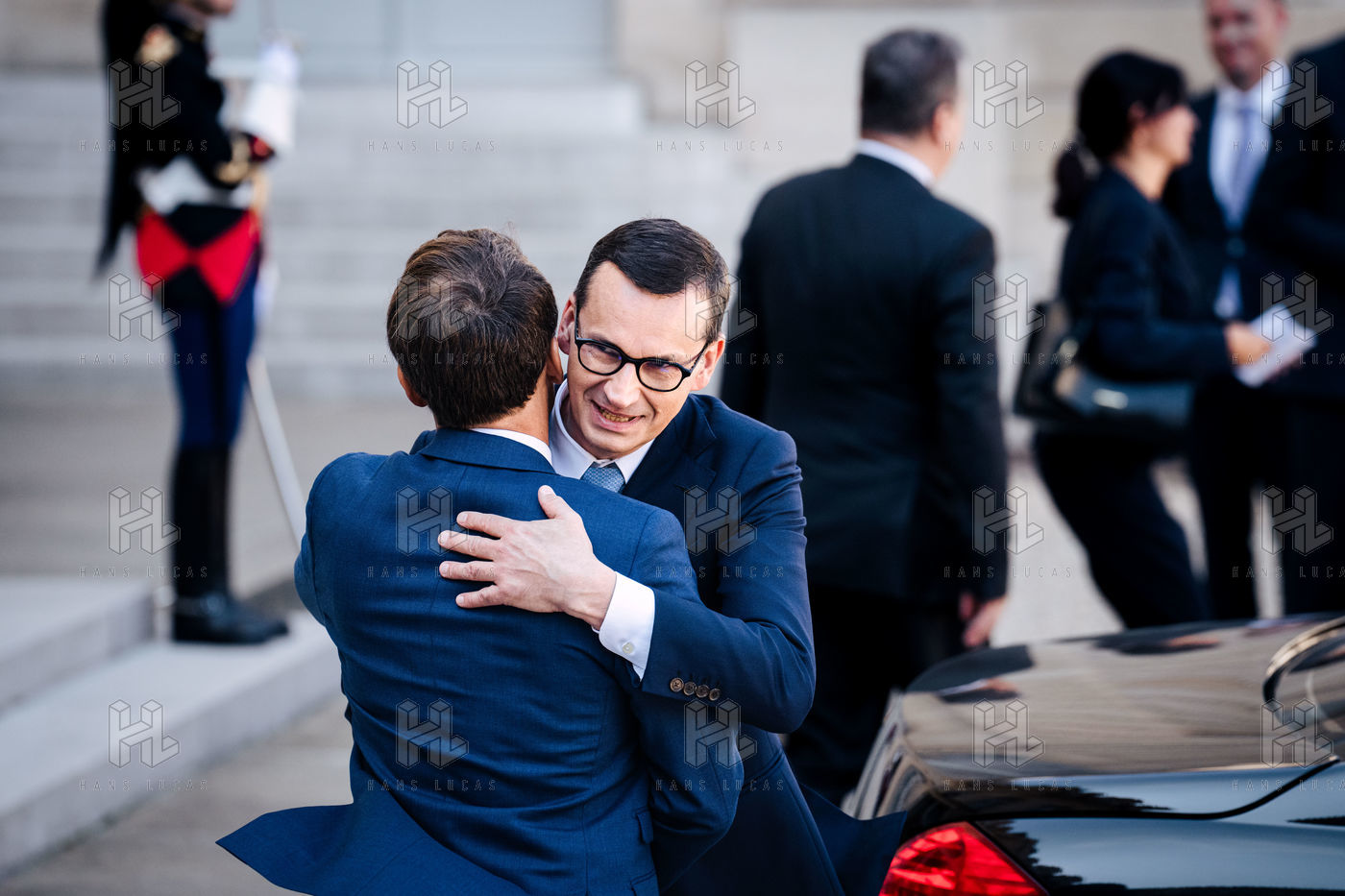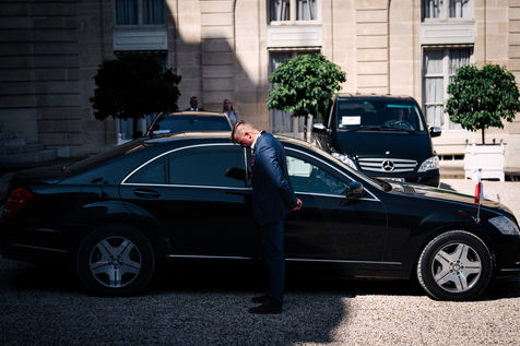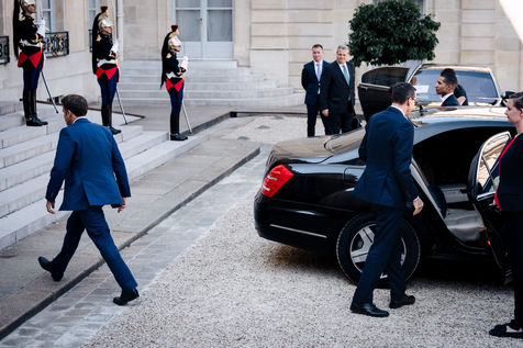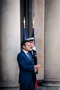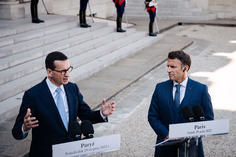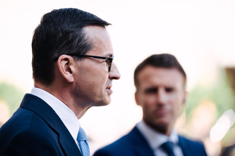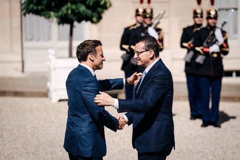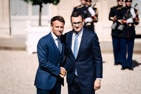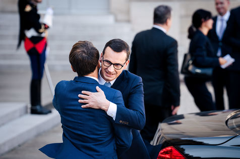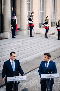 Meeting between Mateusz Morawiecki, President of the Council of Ministers of Poland, and Emmanuel Macron, President of the French Republic, at the Élysée Palace.