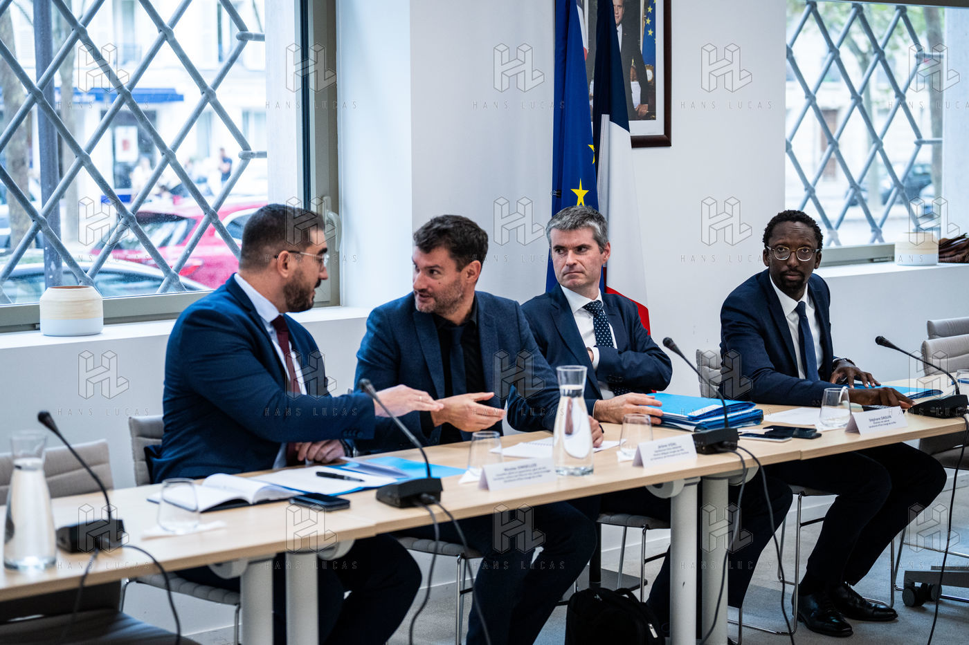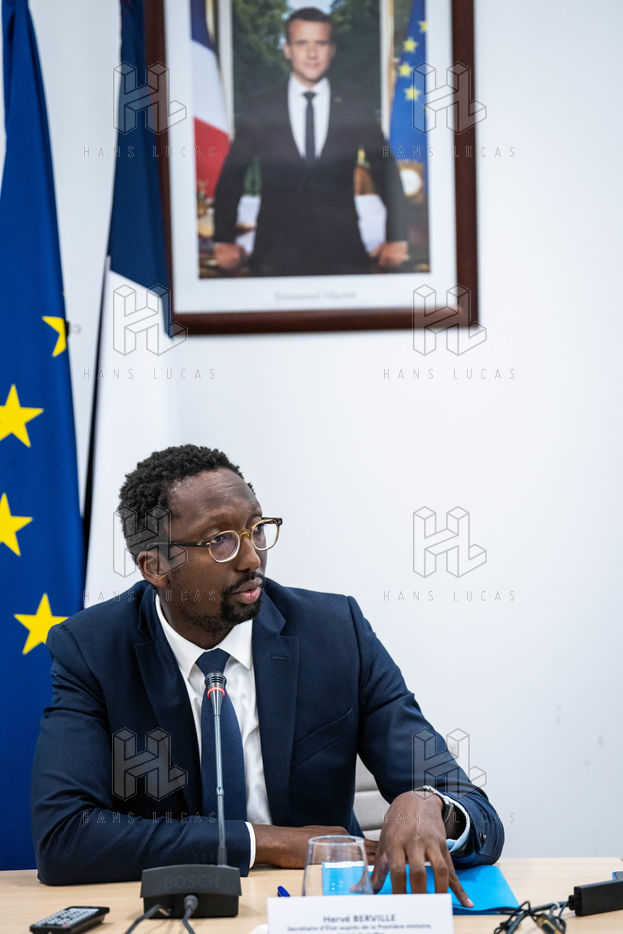 Rencontre d'Hervé Berville, secrétaire d'État auprès du Premier ministre, chargé de la mer, avec les professionnels de la pêche et les acteurs de la grande distribution, avec France filière Pêche, au ministère de la mer. Cette rencontre sera l'occasion de lancer les discussions sur un dispositif de soutien pérenne à la filière pêche française qui prendra le relais des aides publiques en place depuis mars 2022 et qui agira dans le sens de la décarbonisation du secteur.