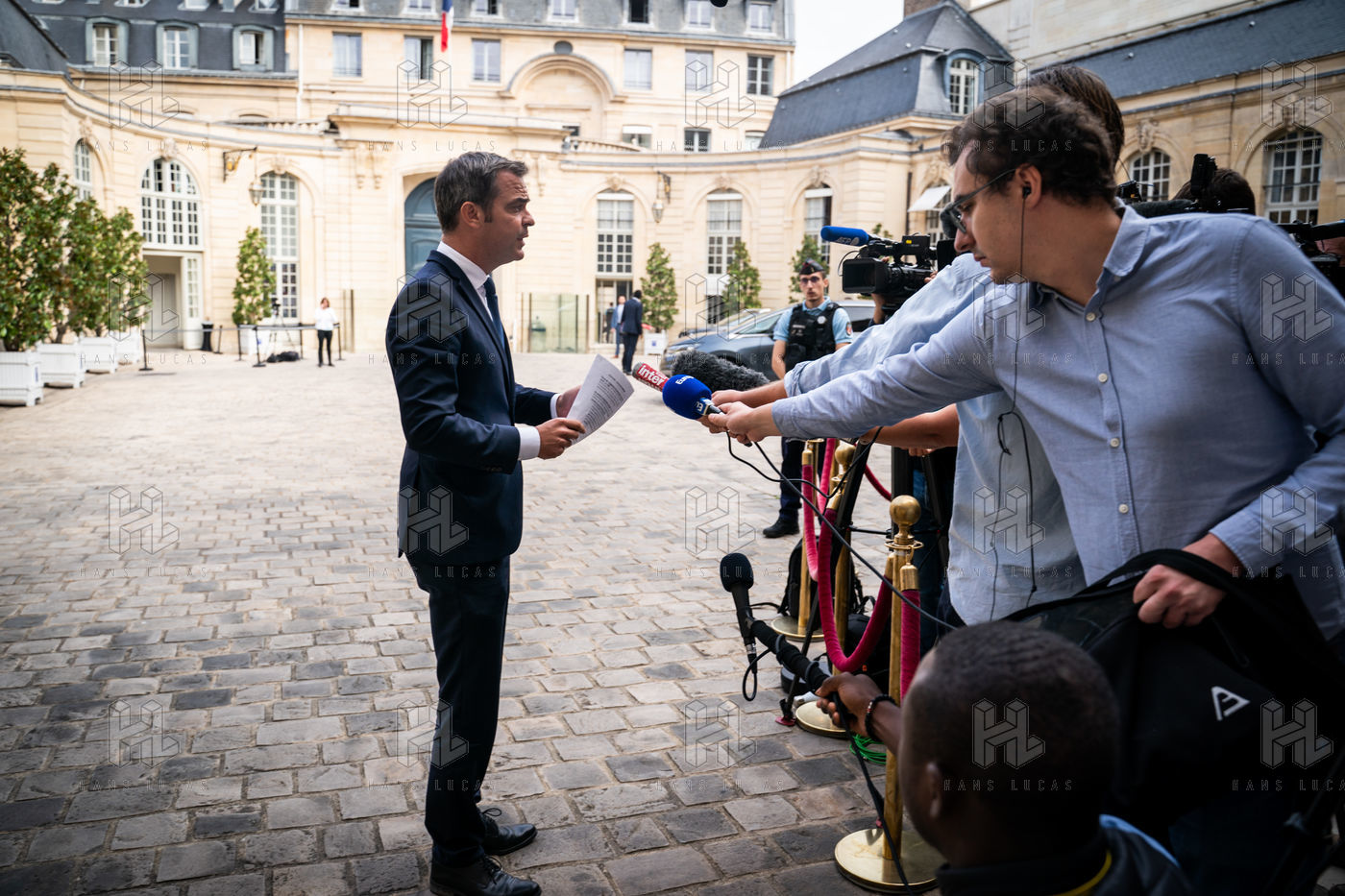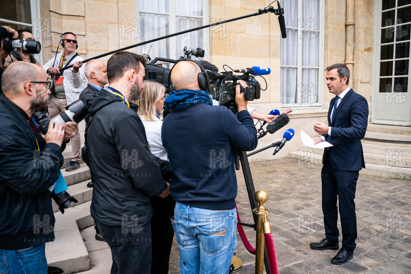 Statement to the press by Olivier Veran, Minister Delegate to the Prime Minister, in charge of Democratic Renewal, Government Spokesperson, in the courtyard of the Hôtel de Matignon following the meeting on the CNR.