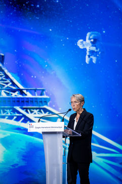 La Première ministre française participe à la cérémonie d'ouverture du 73e Congrès international d'astronautique, qui réunit cette année en France tous les acteurs de l'espace autour des dernières informations et innovations spatiales, à Porte de Versailles.