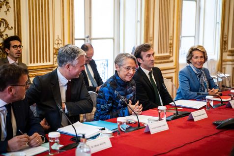 Elisabeth Borne, the French Prime Minister, receives a delegation of elected officials from the France Urbaine association at Matignon. The meeting takes place a few days after the France Urbaine congress, organized in Reims, and will open several new cooperations between the State and the cities, based on the principles of trust, subsidiarity and solidarity between urban and rural territories. Several joint projects will be launched during this meeting, notably in the fields of ecological transition and the fight against poverty.