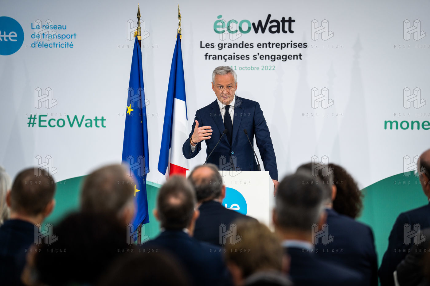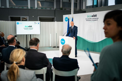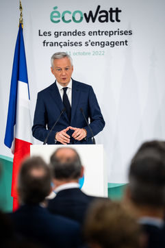 Le ministre de l'économie, des finances et de la souveraineté industrielle et numérique, participe à l'événement EcoWatt, organisé par le réseau de transport d'électricité français (RTE) au siège de RTE à La Défense.