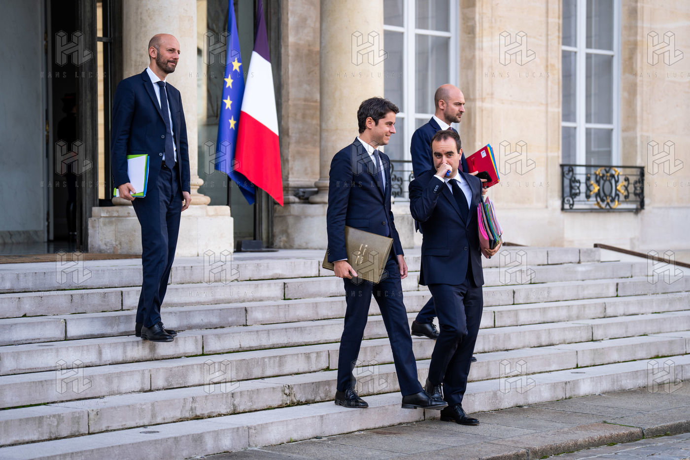SORTIE DU CONSEIL DES MINISTRES AU PALAIS DE L'ELYSÉE, 19 OCTOBRE