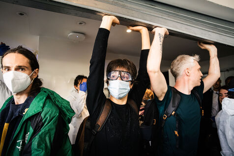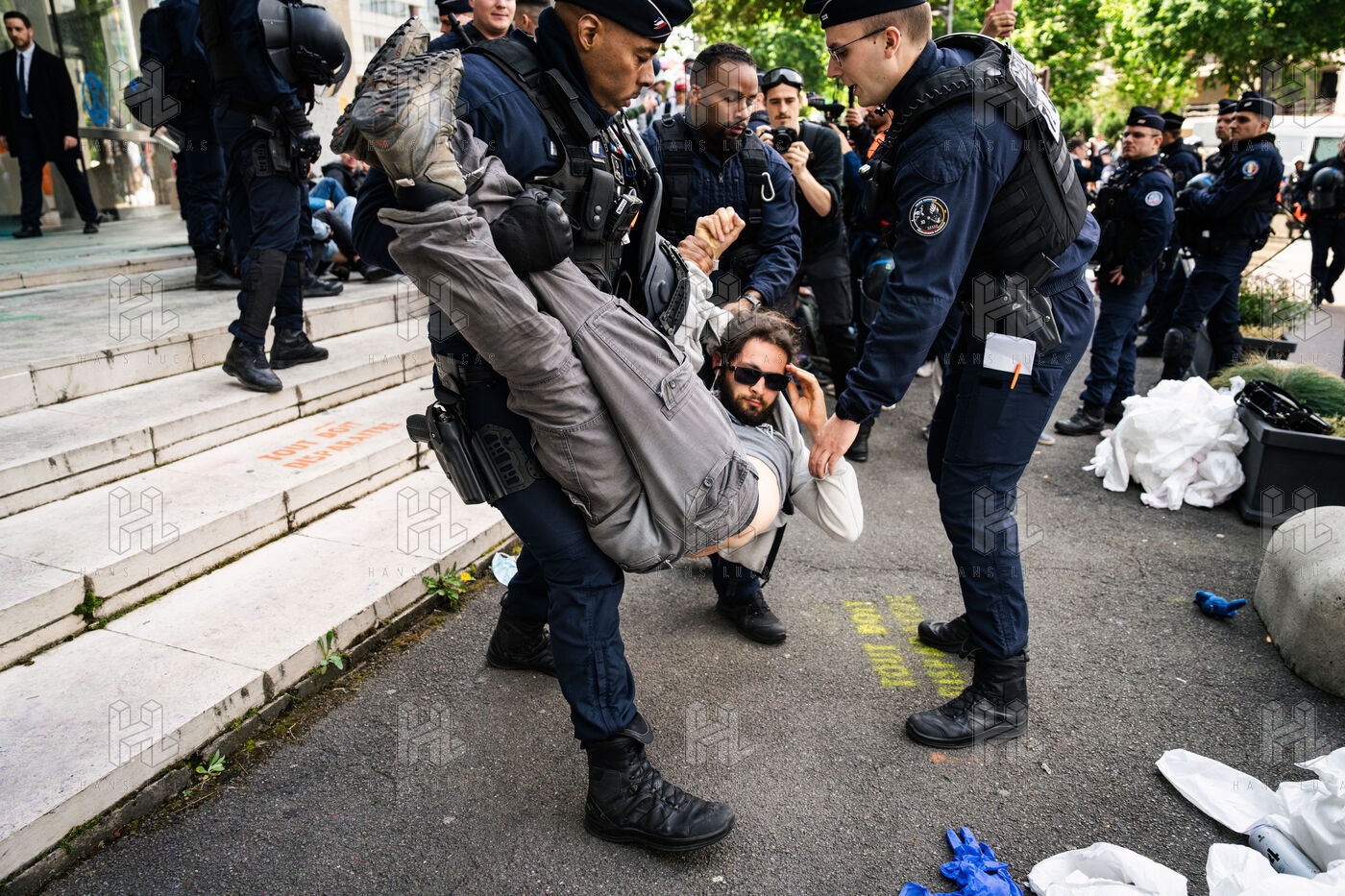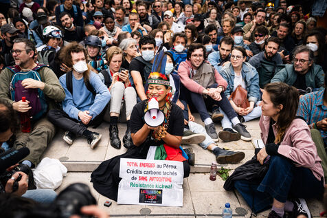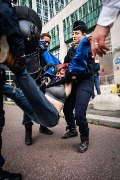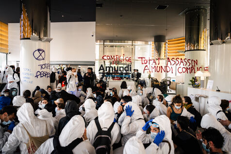 Total liquidation, everything must go in Paris. Rally to occupy the offices of Amundi, Europe's leading asset manager and fourth-largest shareholder in TotalEnergies, in Paris.