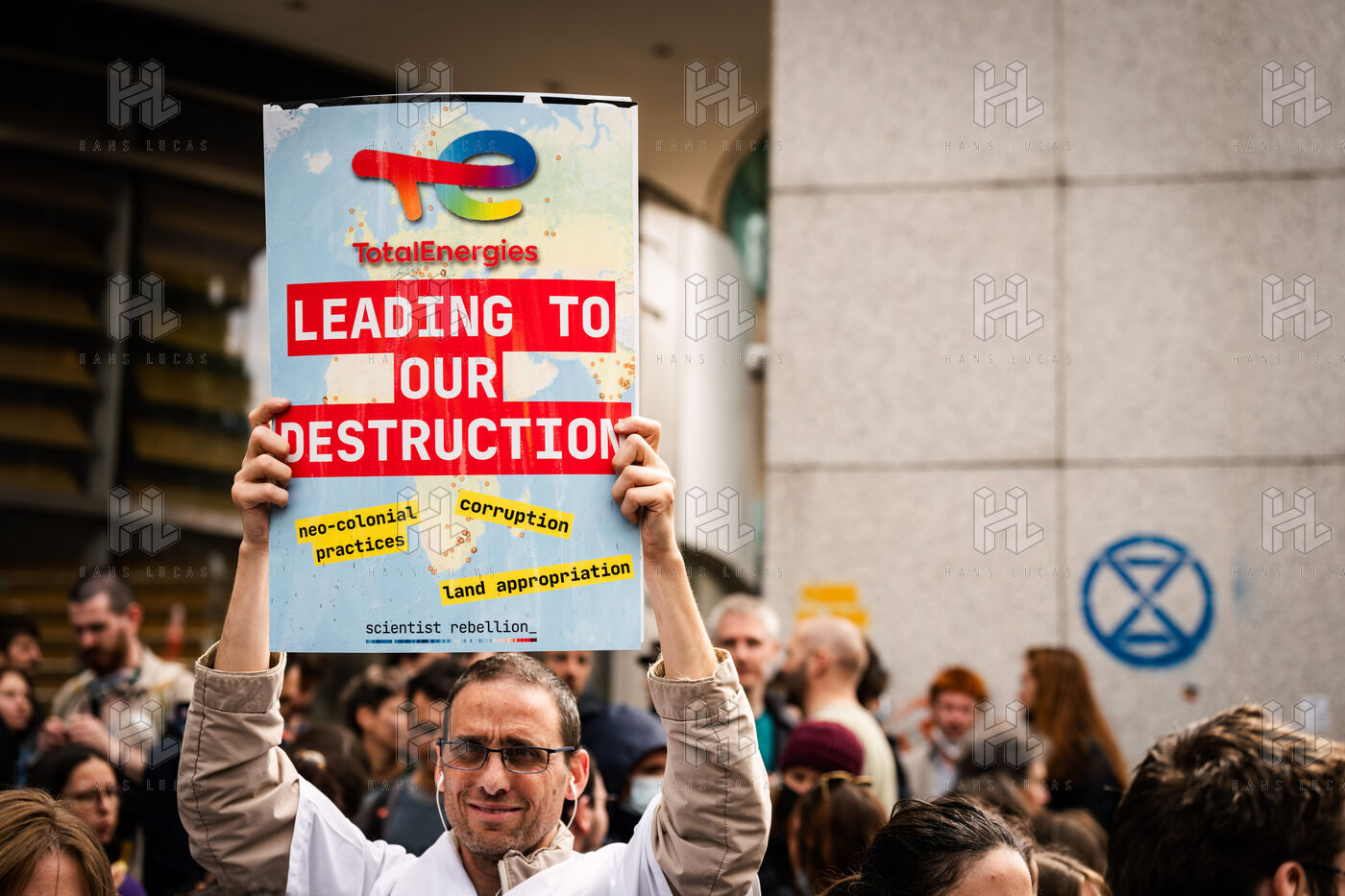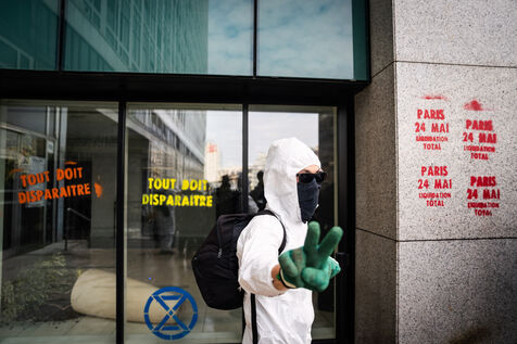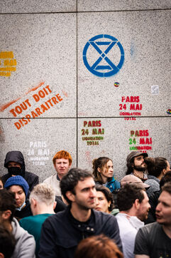 Manifestation organisée par les pacifistes écologistes d'Extinction Rebellion, XR, pour protester contre l'assemblée générale de TotalEnergies.