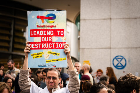 Demonstration organized by environmental pacifists Extinction Rebellion (Rebellion against extinction), XR, to protest against TotalEnergies' Annual General Meeting.