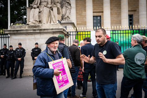 Manifestation d'agriculteurs devant l'Assemblée nationale à Paris.
