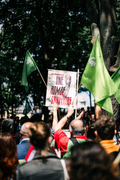Manifestation écologiste contre la loi Dupomb, des citoyens dénoncent les dangers des pesticides pour la santé et la biodiversité.