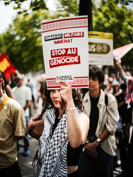 Manifestation de soutien à la Palestine et de dénonciation du génocide à Gaza, organisée à Paris pour exiger un cessez-le-feu immédiat, la levée du blocus et des sanctions contre Israël.