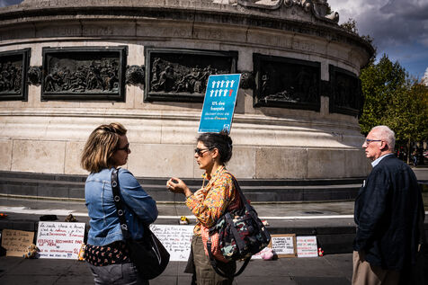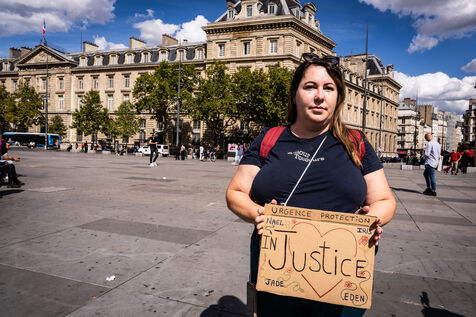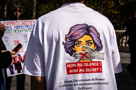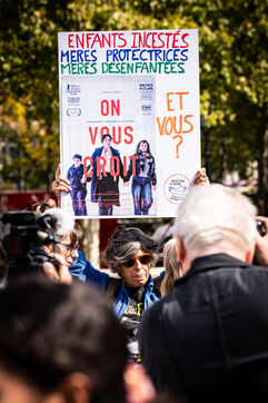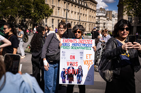 Manifestation des mères protectrices contre les décisions judiciaires relatives à la garde des enfants, à l'inceste et aux violences physiques et sexuelles contre les mineurs, sur la place de la République.
