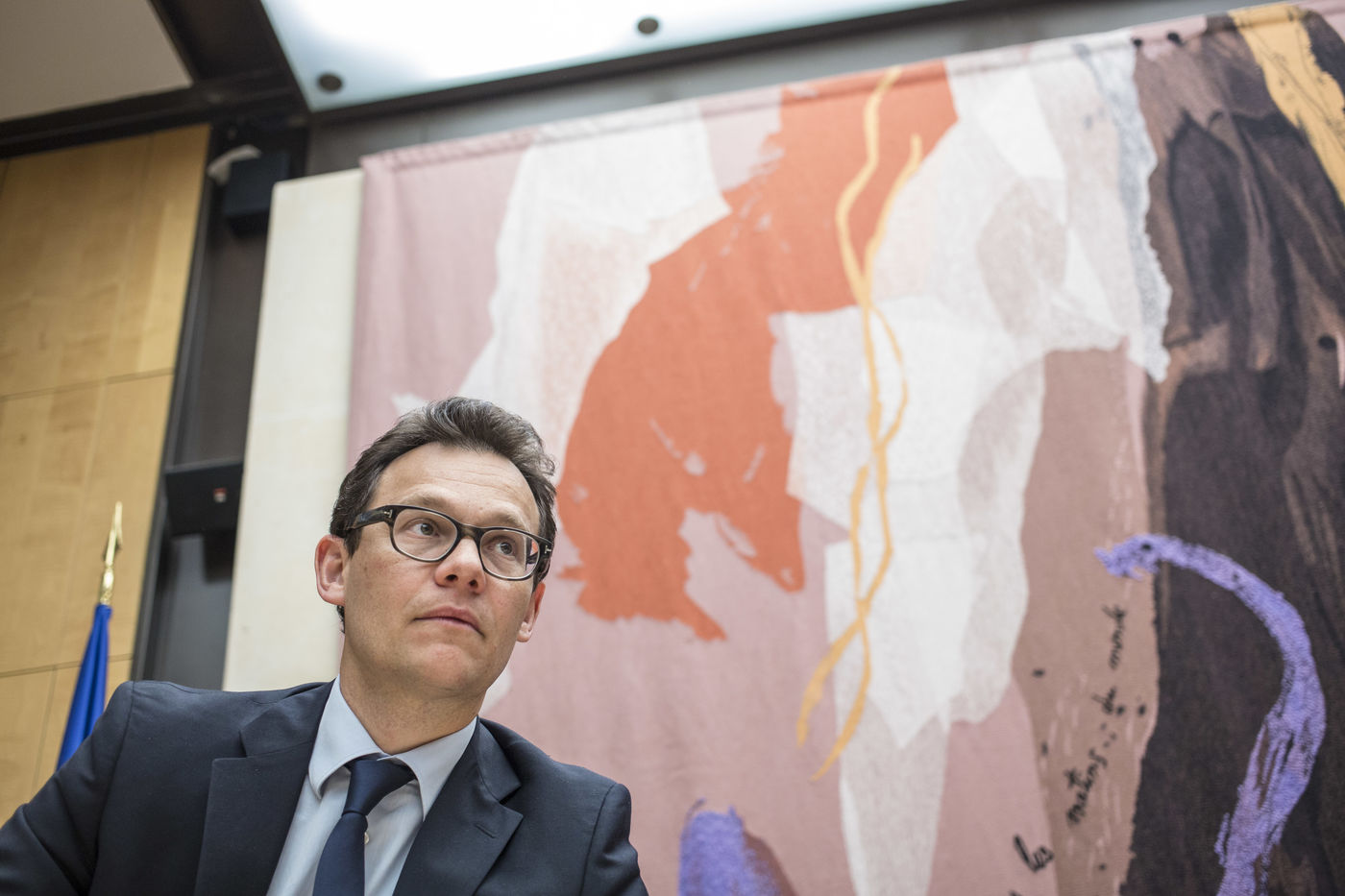 2015/05/12. France. Paris. Assemblee Nationale. Commission des Affaires economiques. Audition de Stephane Israel, president directeur general de Arianespace. Stephane Israel en presence de Francois Bottes president de la commission.