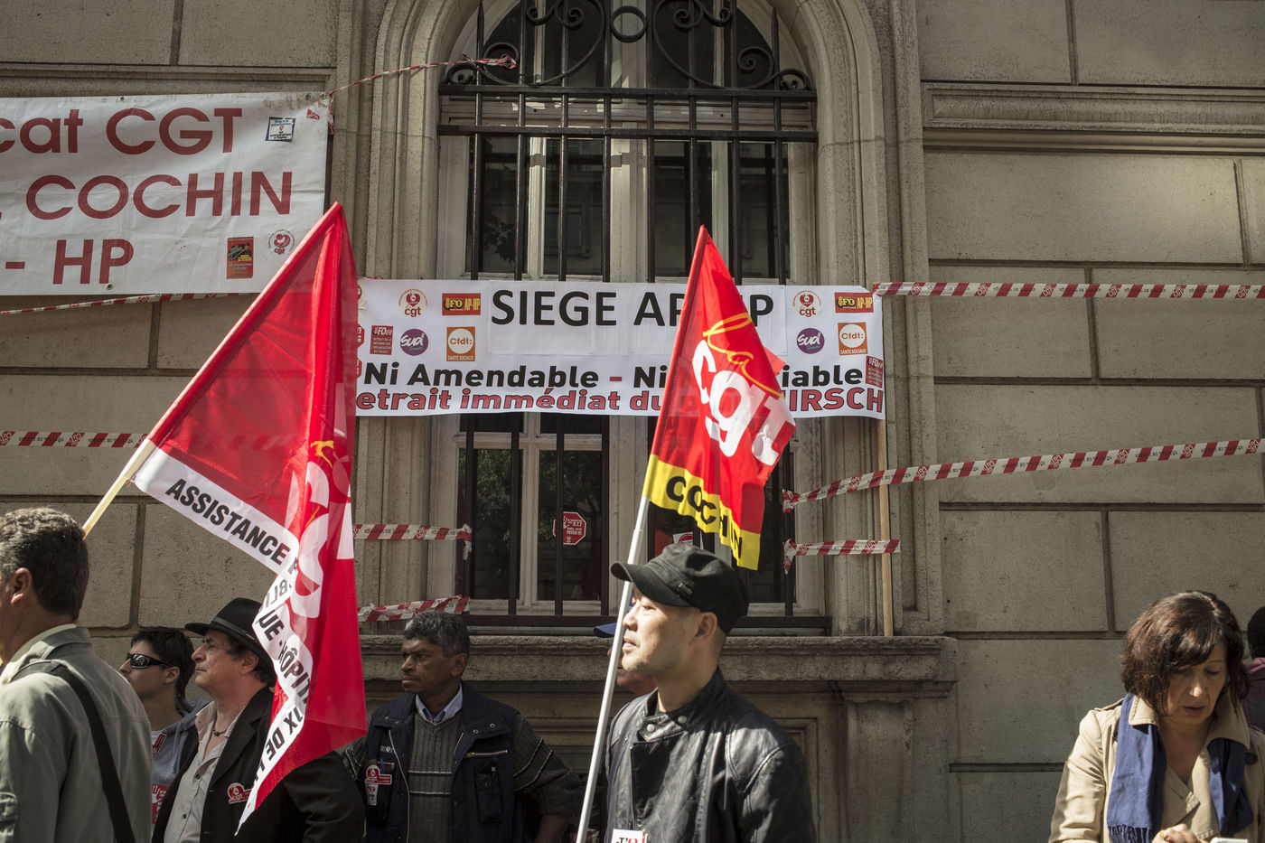2015/05/28. PARIS . FRANCE Manifestation et greve du personnel des hopitaux de paris devant la direction de l ap-hp a Paris pour defendre les 35 heures