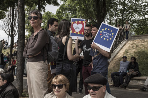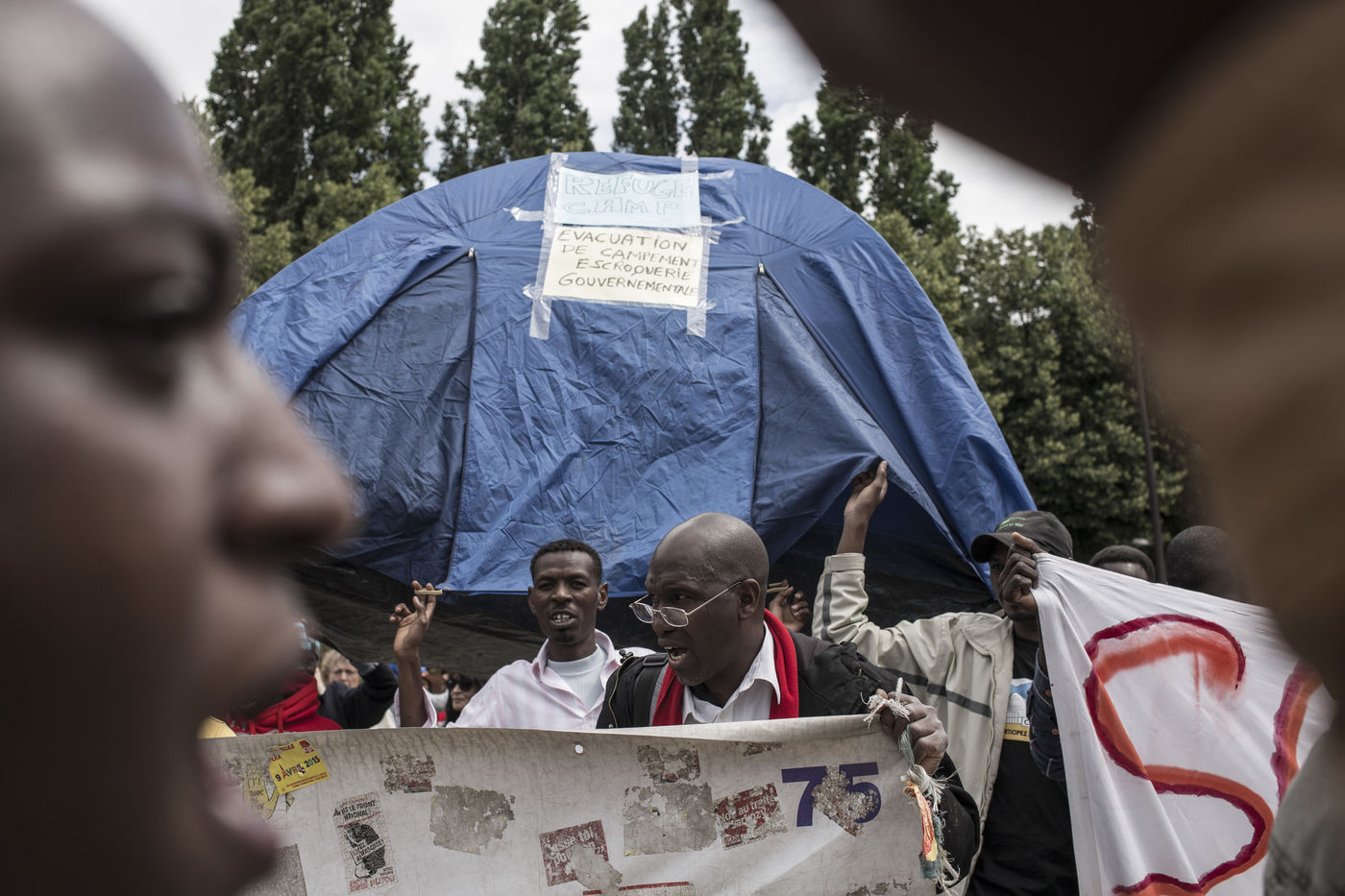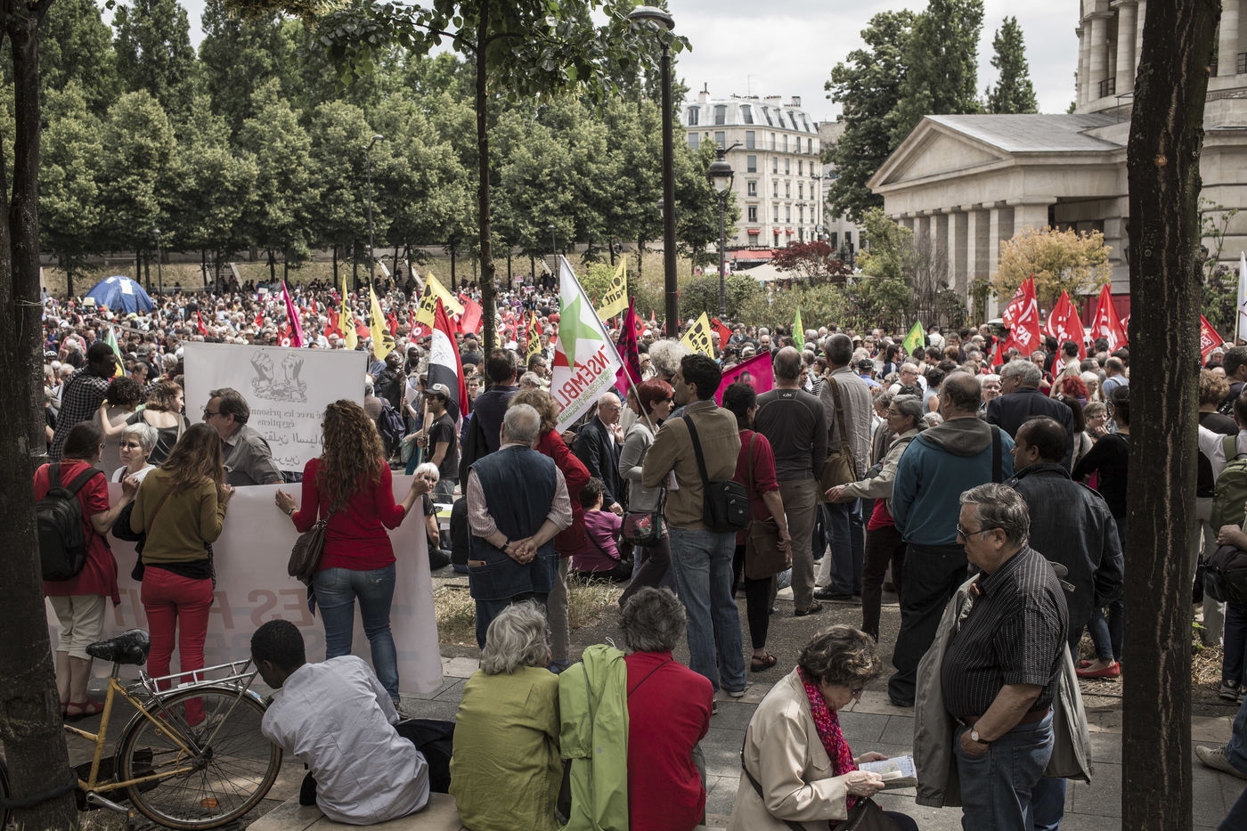 Paris. France. 2015/06/20. Paris. Manifestation en soutien aux Grec et aux migrants. Plusieurs centaines de personnes ont manifeste en soutien aux migrants et au peuple grec et contre les politiques d austerite de la place Stalingrad a la Place de la Republique.