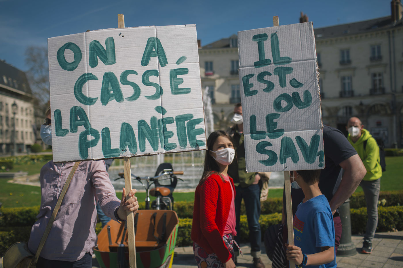 Tours, région centre, Indre et Loire, le 28 mars 2021. A la veille de l?examen & l'Assemblée nationale du projet de loi Climat et resilience. Dans le centre ville de Tours, plusieurs milliers de militants écologistes ont organisés une marches "pour une vraie loi climat".