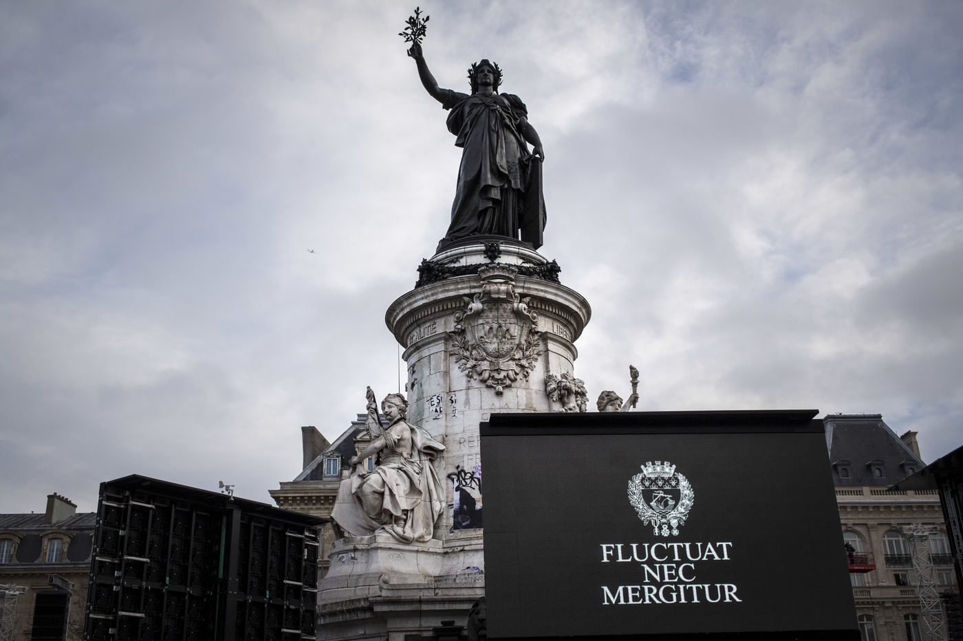Paris, France le 10 janvier 2016. Place de la Republique. Commemoration des attentats de l hebdomadaire Charlie Hebdo et du magasin l Hyper Cacher de la porte de Vincennes. / Paris, France January 10, 2016. Place of the Republic. Commemoration of the attacks of the satirical weekly newspaper Charlie Hebdo and the Jewish store Hyper Cacher at the door of Vincennes.