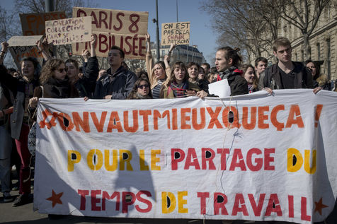Paris. France. Le 17 mars 2016. De la Place de la République a la Place d'Italie. Journée nationale de mobilisation contre la loi travail avec une forte mobilisation des lycéens et étudiants.