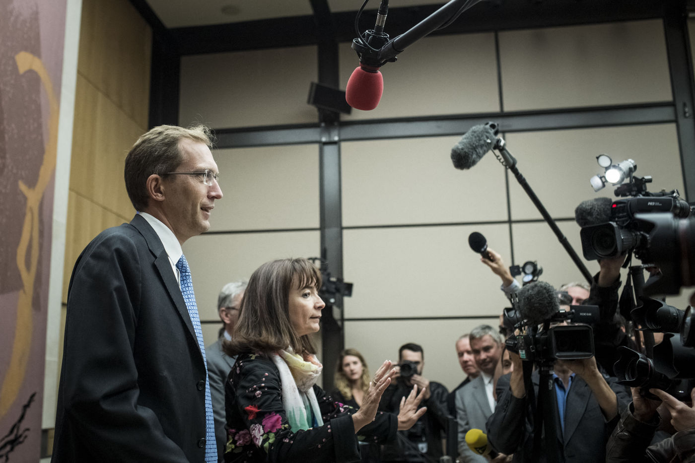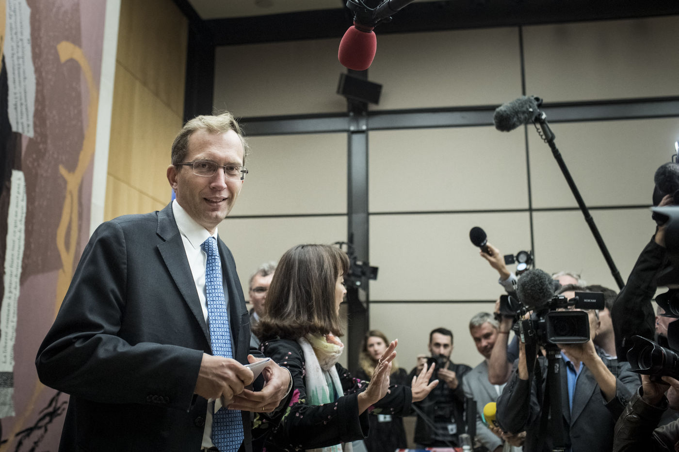 Assemblee Nationale, Paris, France, 27 septembre 2016. Henri Poupart Lafarge, PDG Alstom, entendu par la Commission des affaires economiques, apres avoir annonce la fermeture de l usine Alstom de Belfort.