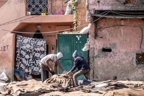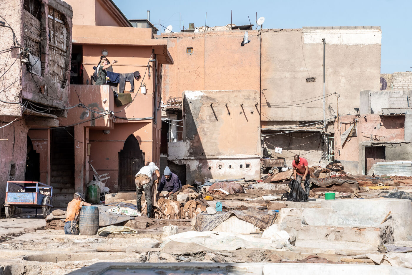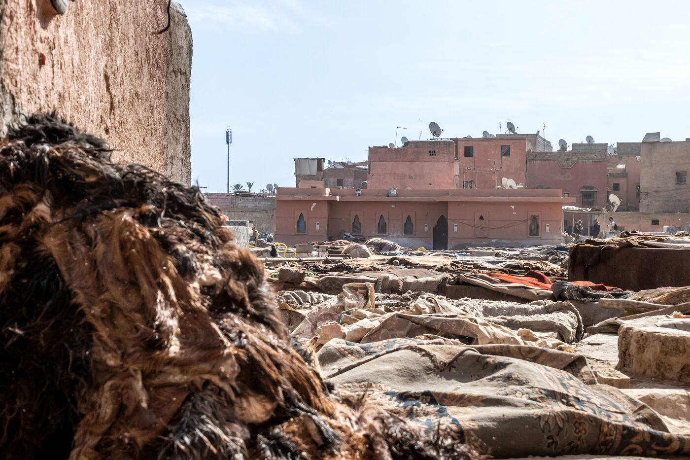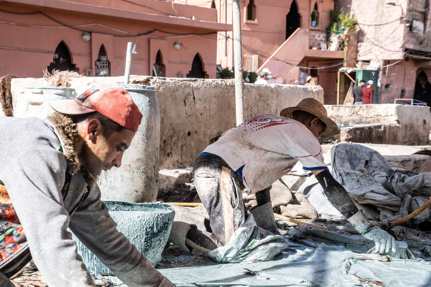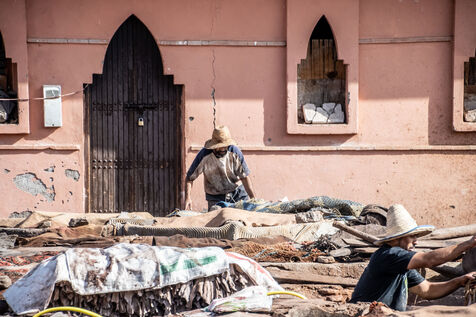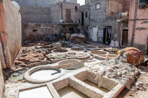 Quartier situé à l'est de Marrakech, c'est ici que viennent tous les jours, travailler nombreux tanneurs. Le traitement de ces peaux d'animaux mettent à rude épreuve ces travailleurs de l'ombre, le tout dans des conditions très compliqués.