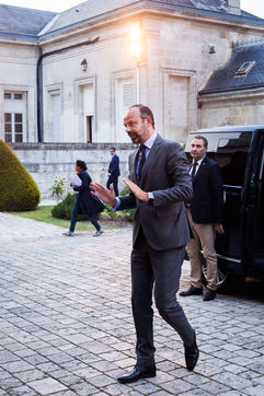 Le Premier ministre Edouard Philippe arrive à la Préfecture de la Charente pour une visite de deux jours dans le département, le 01 mai 2019 a Angouleme, France.