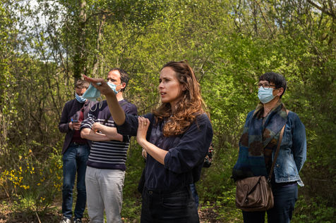 Clémence Guetté, candidate LFI-NPA pour les élections régionales en Nouvelle-Aquitaine, en visite à Angoulême sur le site de la carrière Lafarge de La Couronne pour le projet Imagiland - un parc d?attractions sur la BD - accompagnée par le collectif ImagiNon, le 21 avril 2021 à Angoulême, Charente, Nouvelle-Aquitaine, France.