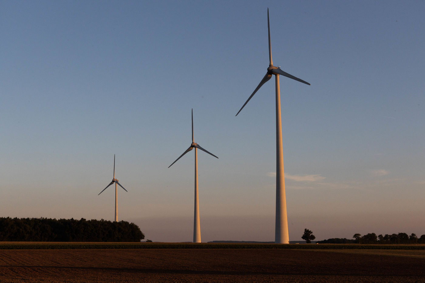 France, Saint-Fraigne, 2021.09.23. Saint-Fraigne wind farm in the Charente, at the end of the day.