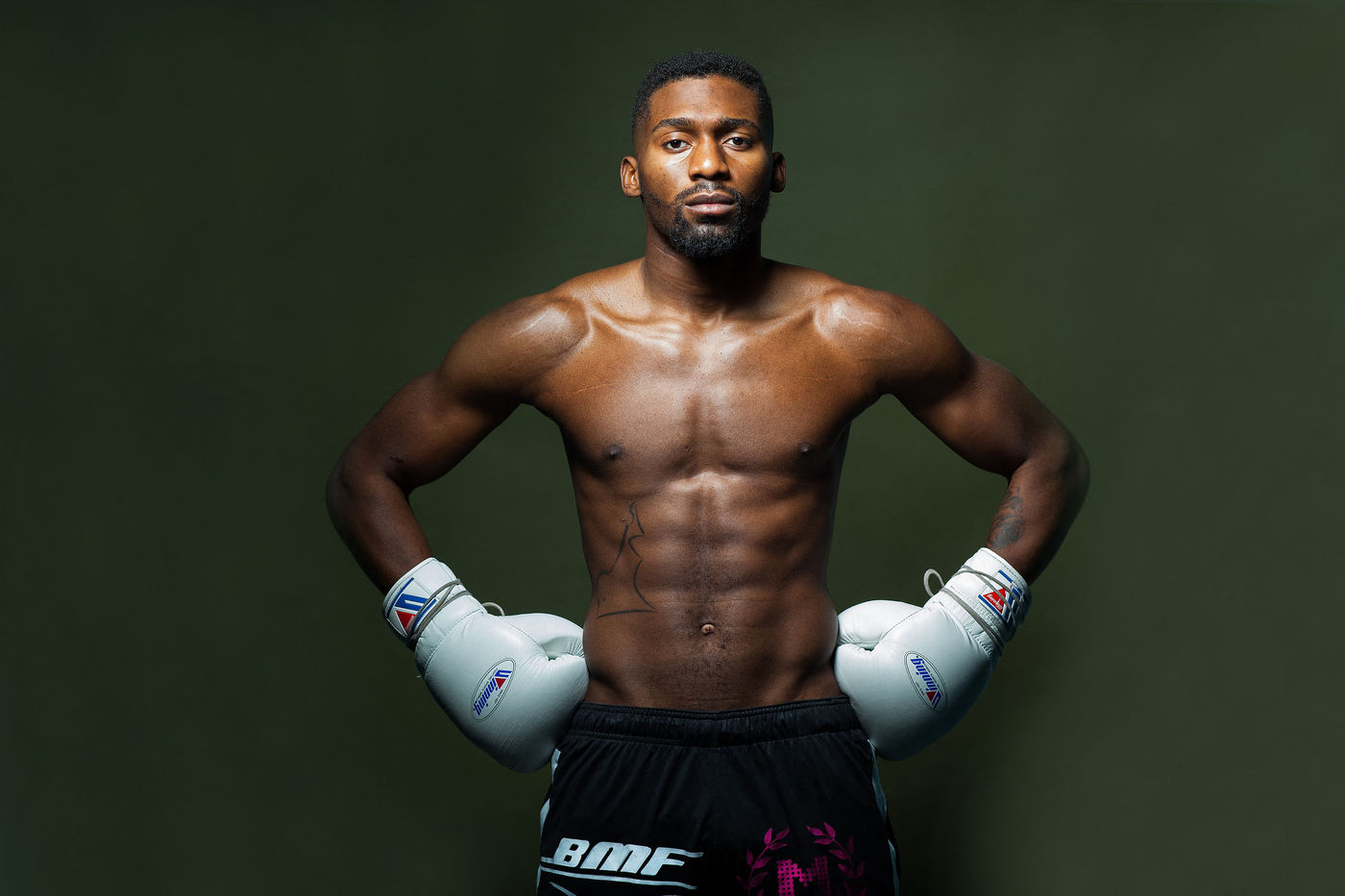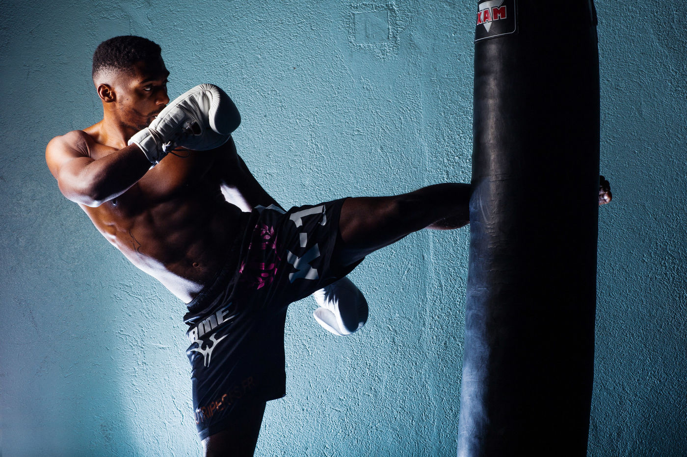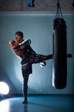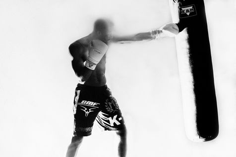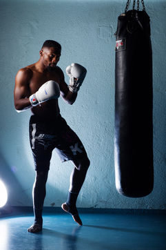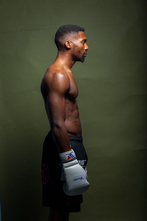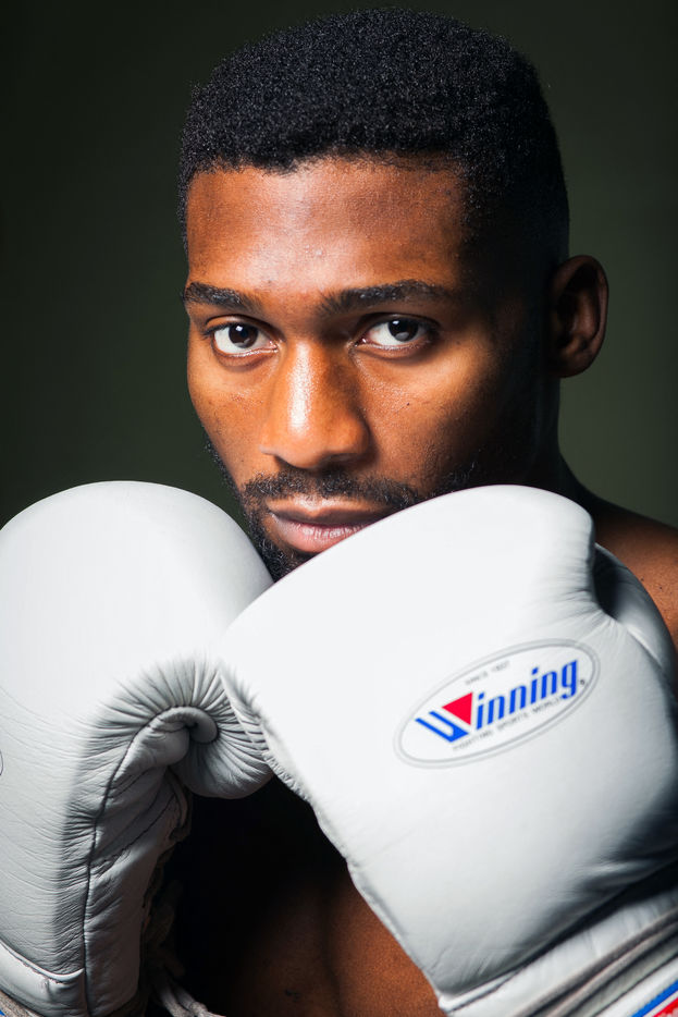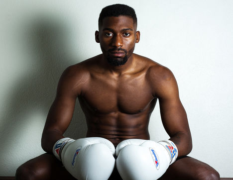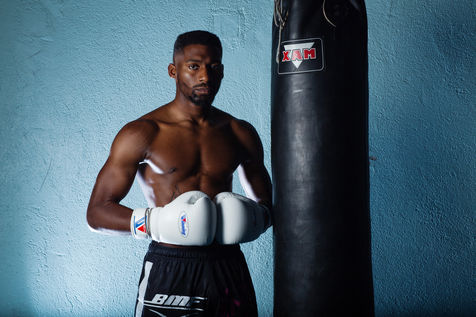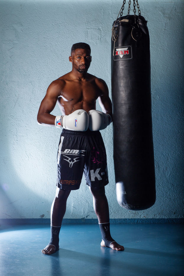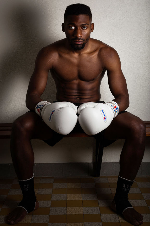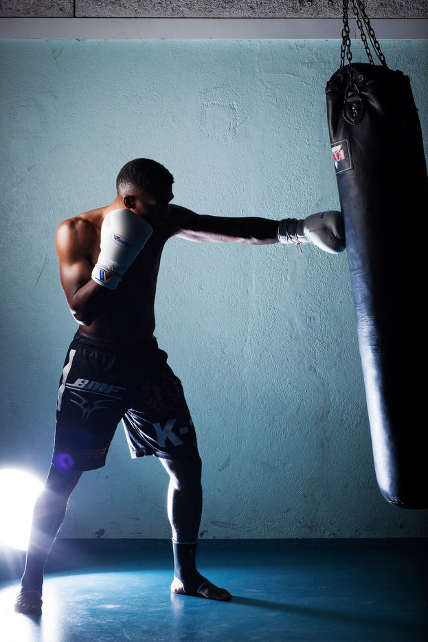 Portrait de Cédric Doumbé, 24 ans, boxeur français du Levallois Sporting Club à l'entrainement lors d'un passage à Angoulême.