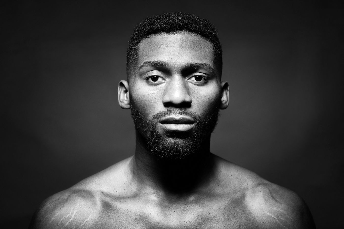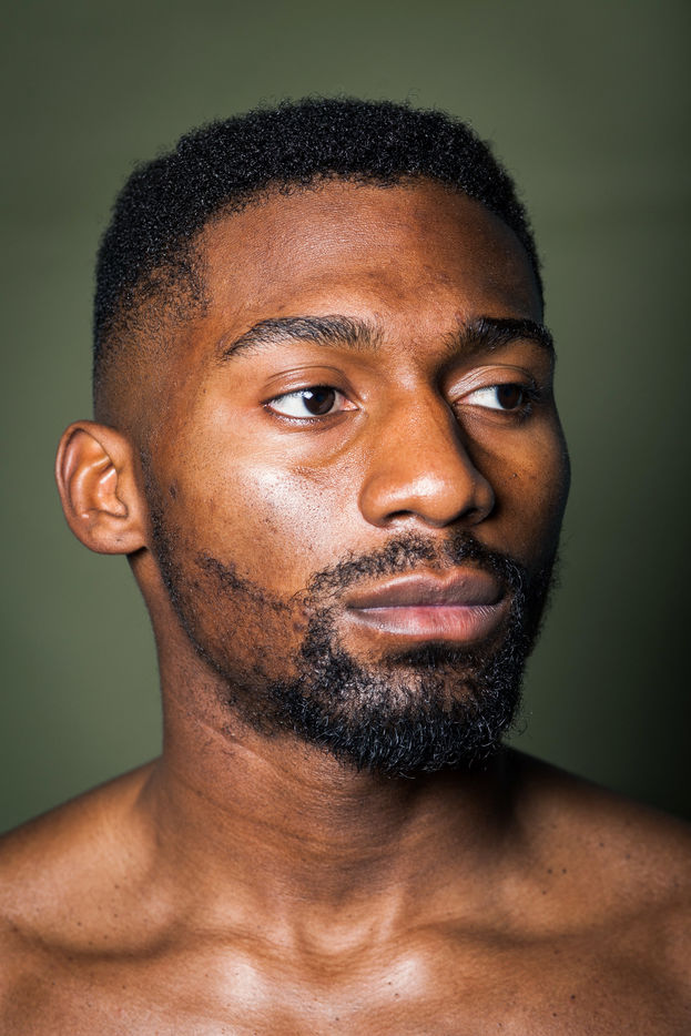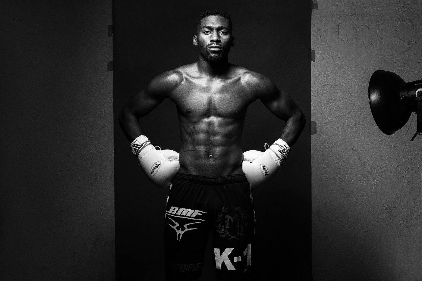 Portrait of Cédric Doumbé, 24 years old, French boxer from the Levallois Sporting Club during a training session in Angoulême.