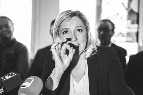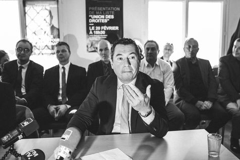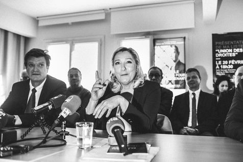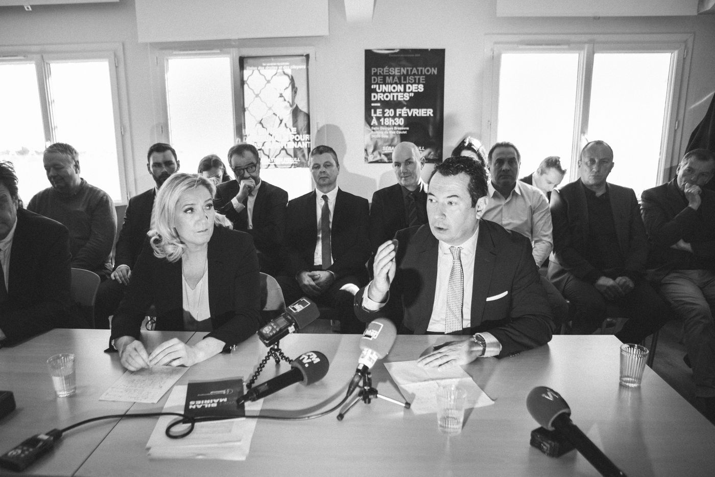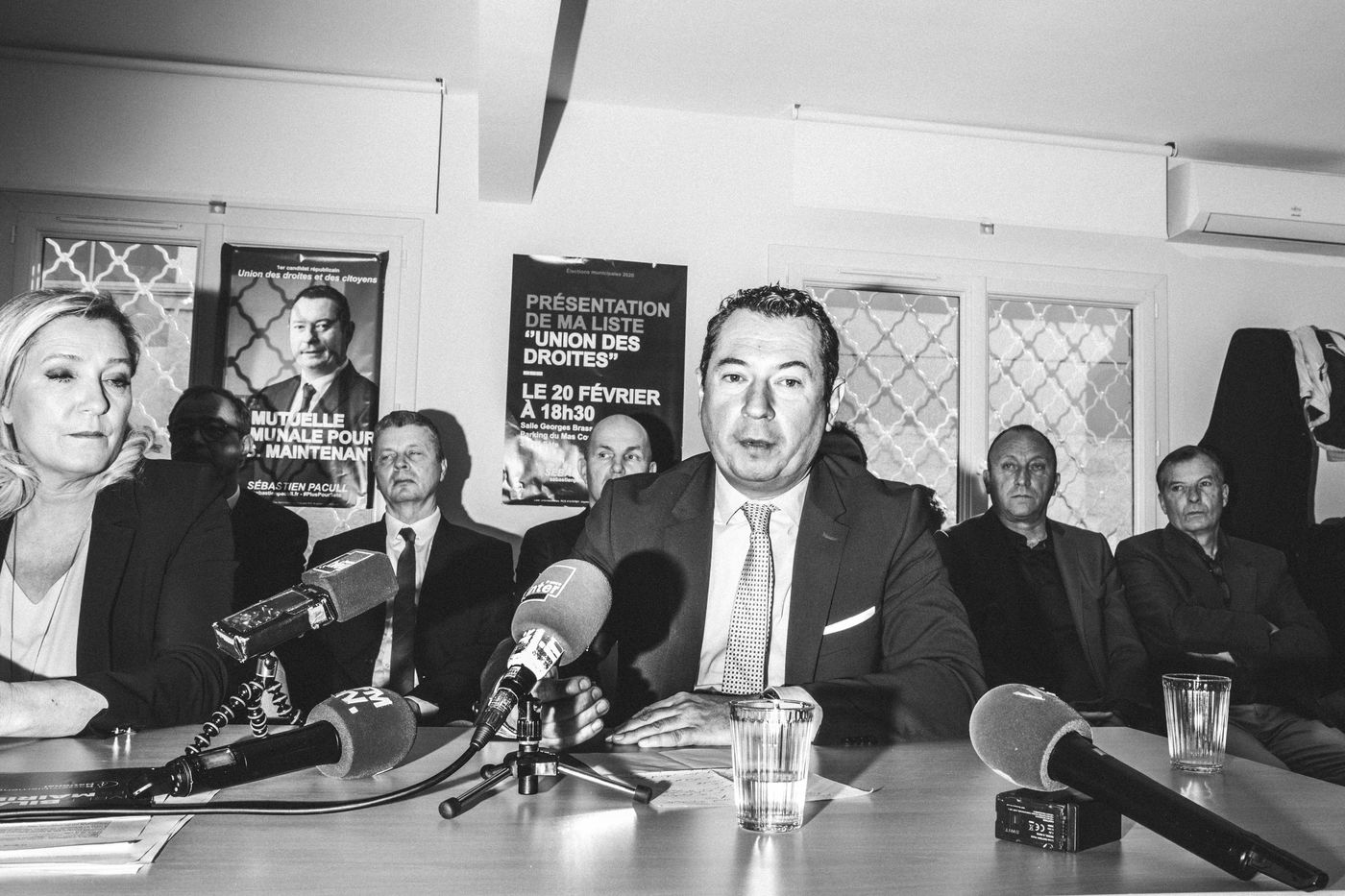 Conférence de presse de Marine Le Pen et Sébastien Pacull candidat aux municipales à Sète, sous la bannière Union des Droites.