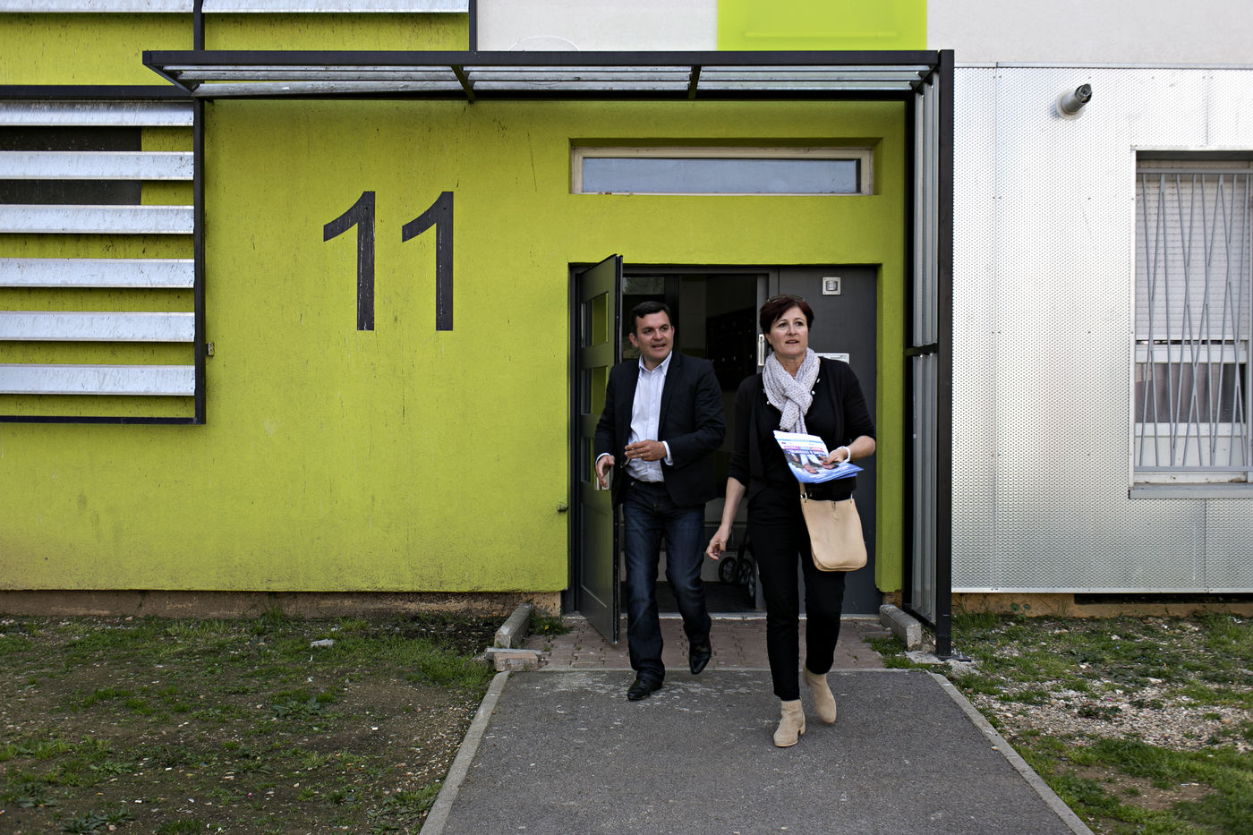 Cette idée selon laquelle sans la loi, les candidates ne seraient pas là, se retrouve aussi à droite. Valérie Bréard, brune aux cheveux courts, est candidate du binôme UMP dans le canton de Montpellier-1. Elle constate, entre deux distributions de tracts, qu'il y a « une suprématie de fait des hommes et une défiance de la part des cadres politiques du parti » à l'investiture de femmes. Agée de 48 ans, conseillère en communication, la candidate souligne que lors des discussions avec les habitants, elle s'est rendue compte que « les jeunes sont bienveillants, au contraire, ce sont les plus vieux qui me renvoient à mon statut de femme ». Son binôme Charles Khoury, lui, n'en est pas à sa première campagne politique. Cet ancien collaborateur de Jean-François Mattéi (ministre de la santé sous Jacques Chirac) a aussi été chef de cabinet d?Hélène Mandrou à la mairie de Montpellier. Et la nouvelle loi électorale n'est pas pour lui déplaire : il parle de « sérénité de travail et de complémentarité dans les rôles ». D'ailleurs, lorsque la sonnerie retentit à la sortie de la petite école de Grabels, c'est Valérie Bréard qui profite de la présence des mères de famille pour discuter « problématiques éducatives et familiales ». En tant que mère de trois enfants, elle estime « avoir une connivence avec les citoyennes que ne pourrait avoir un homme ».