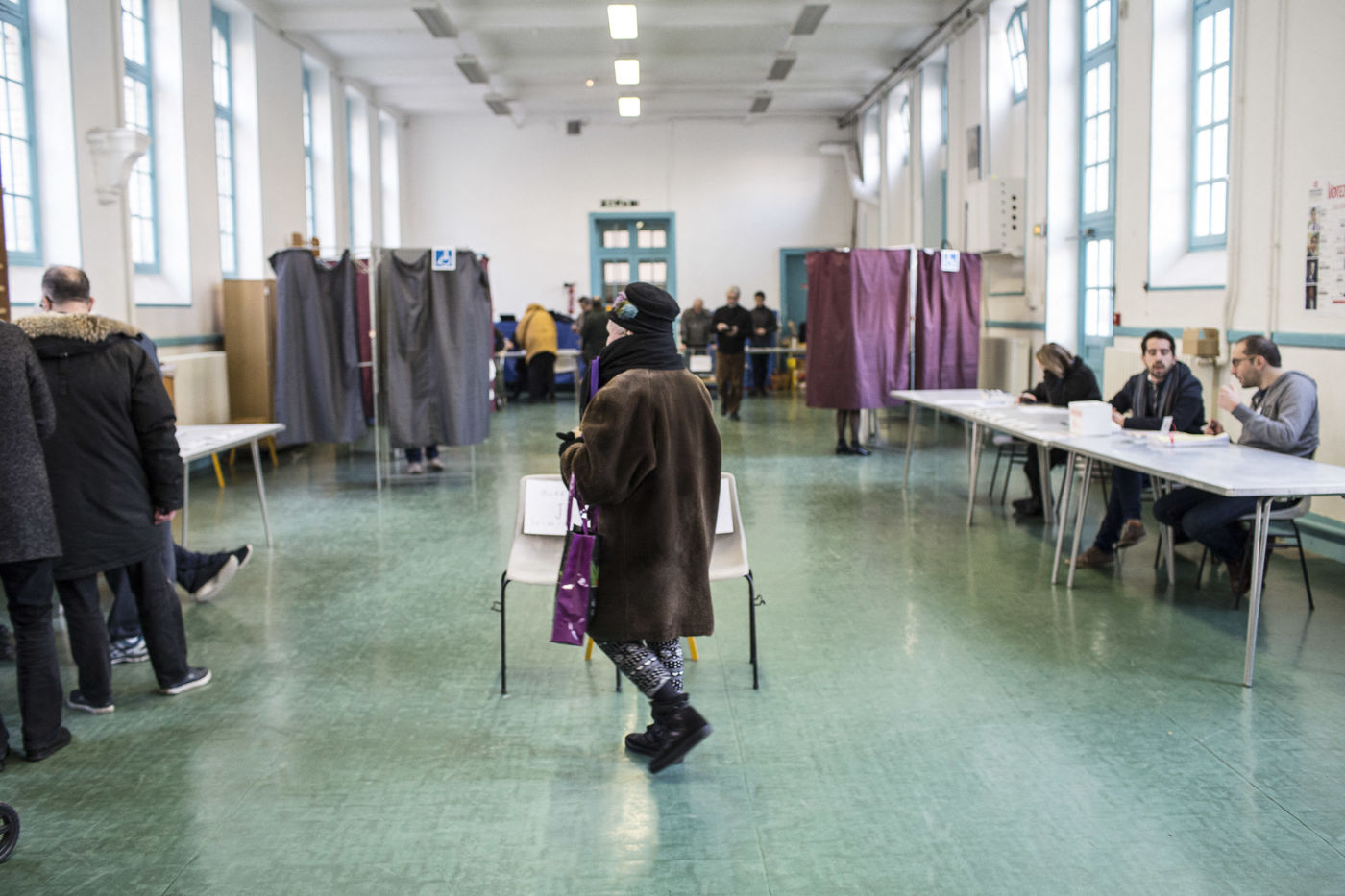 22 janvier 2017, Paris, FRANCE. Le bureau de vote avenue Michel Bizot à Paris dans le 12ème arrondissement est ouvert dans le cadre des primaires citoyennes de la gauche.
