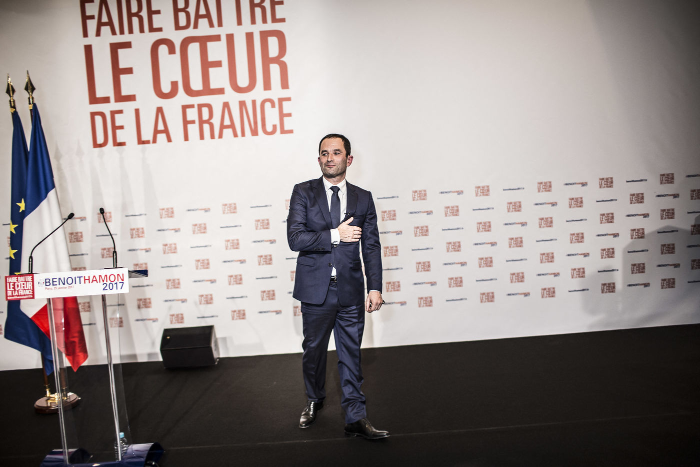 Paris, Primaires de la gauche, discours de victoire de Benoît Hamon à la Mutualité