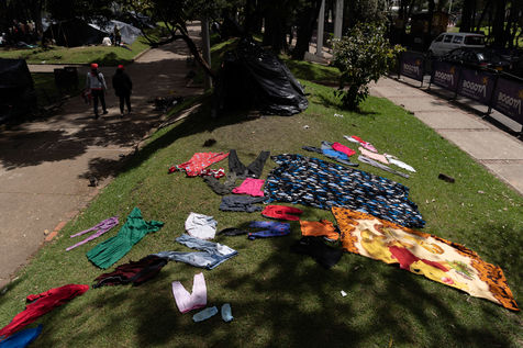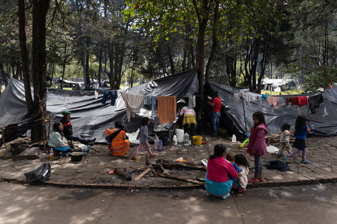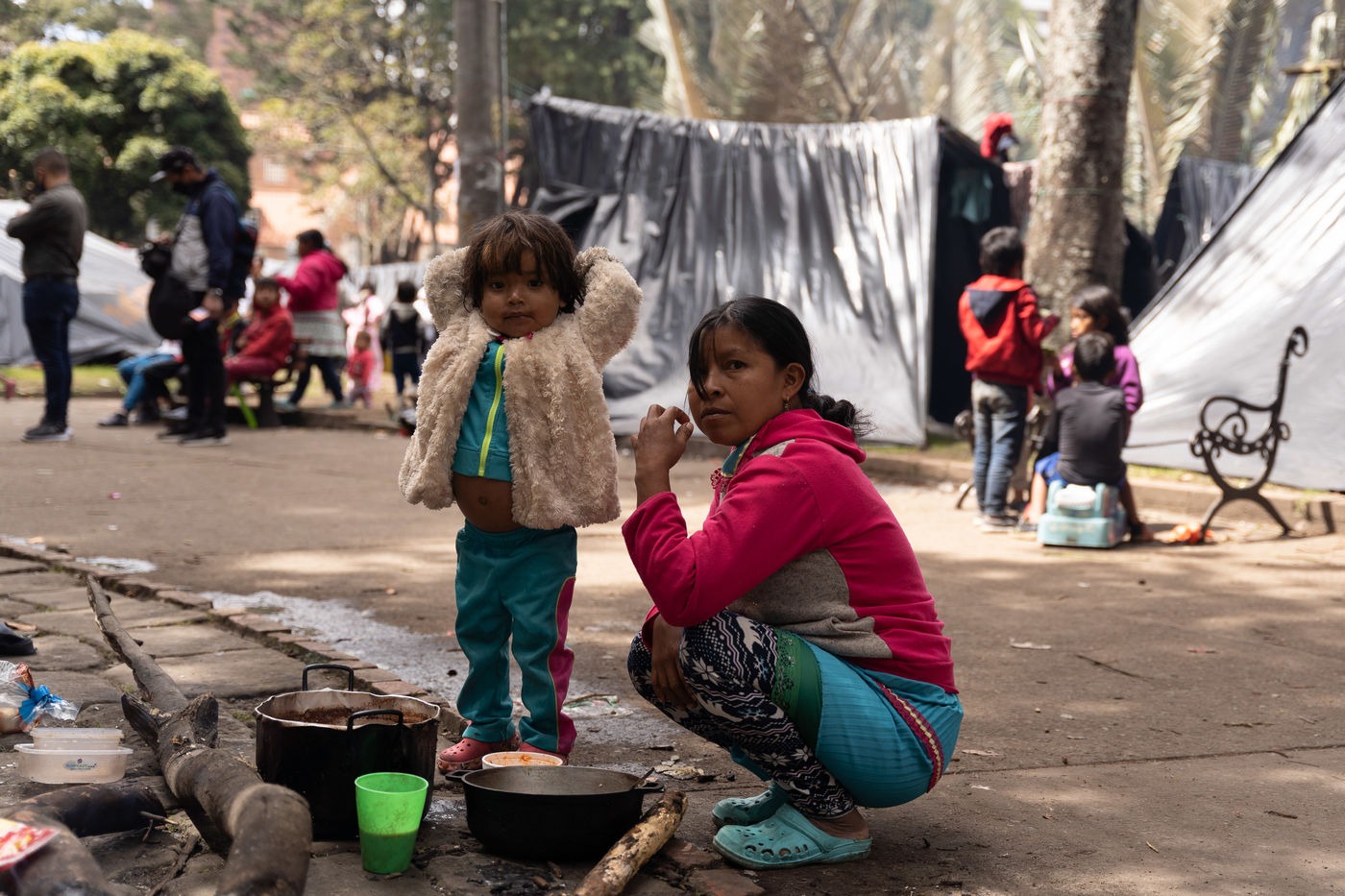 They say they are occupying the park because they have been displaced by armed groups, lack of resources and jobs, and because the government has cut off aid to them and they have been evicted. They say they will occupy the park until the government agrees to negotiate with them and either guarantee a safe return or help them find suitable housing elsewhere.