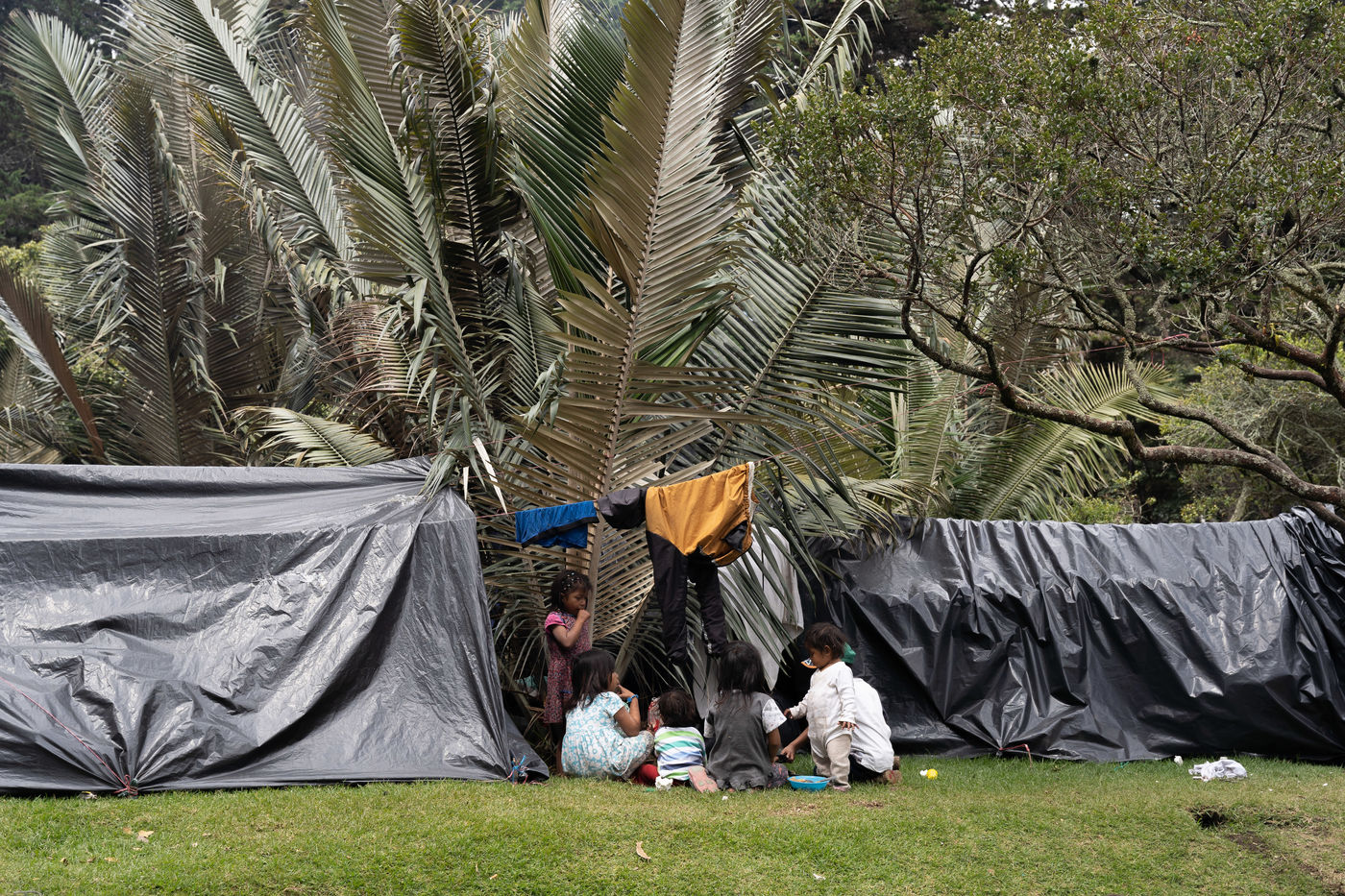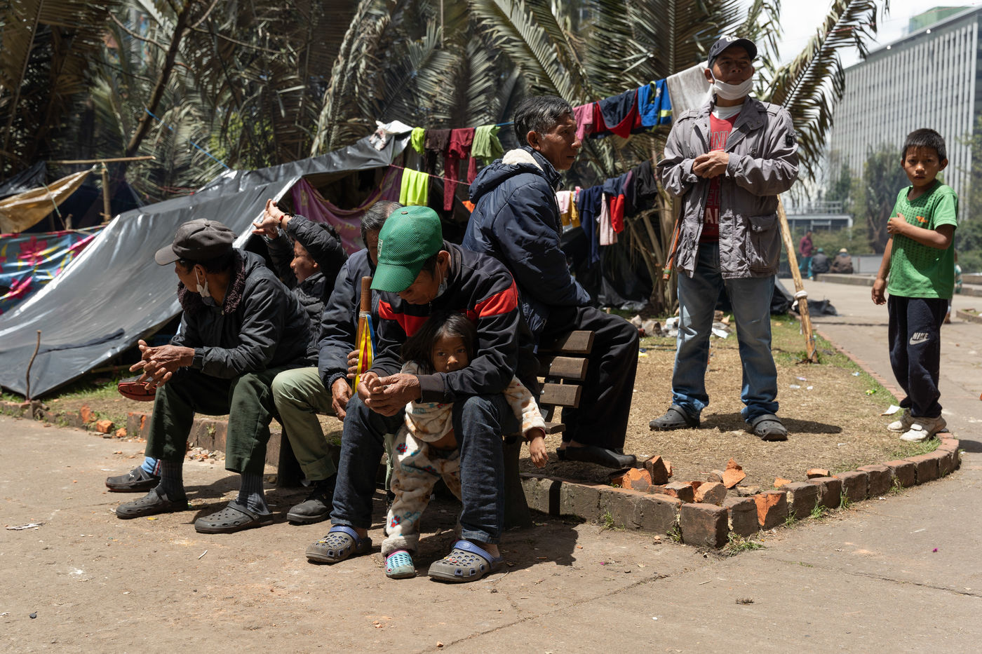 Des groupes indigenes deplacés occupent un parc national a Bogota, en Colombie.